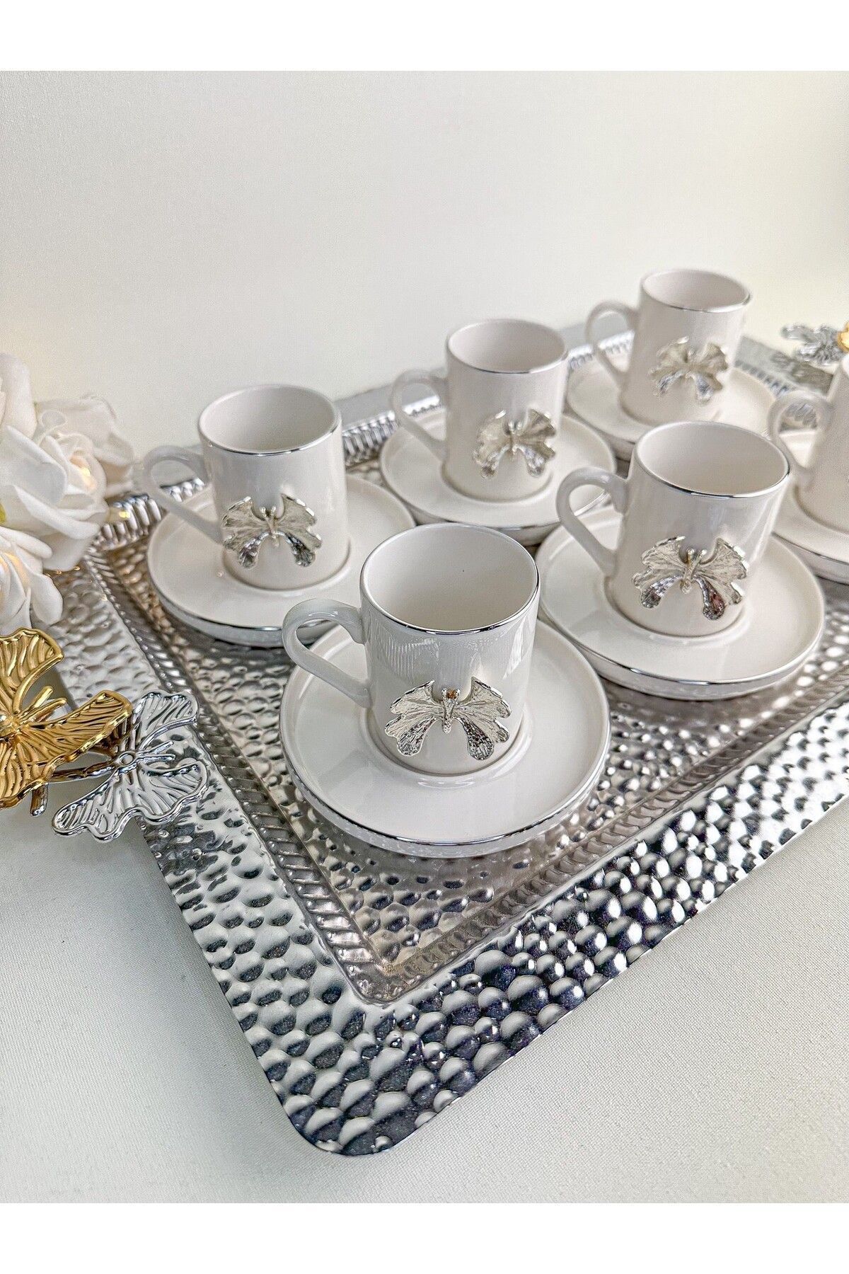 Lale Figürlü Altın Yaldız Dekorlu Porselen Kahve Fincan Takımı Lale Figürlü Altın Yaldız Dekorlu Porselen Kahve Fincan Takımı AYB542 تک سایز