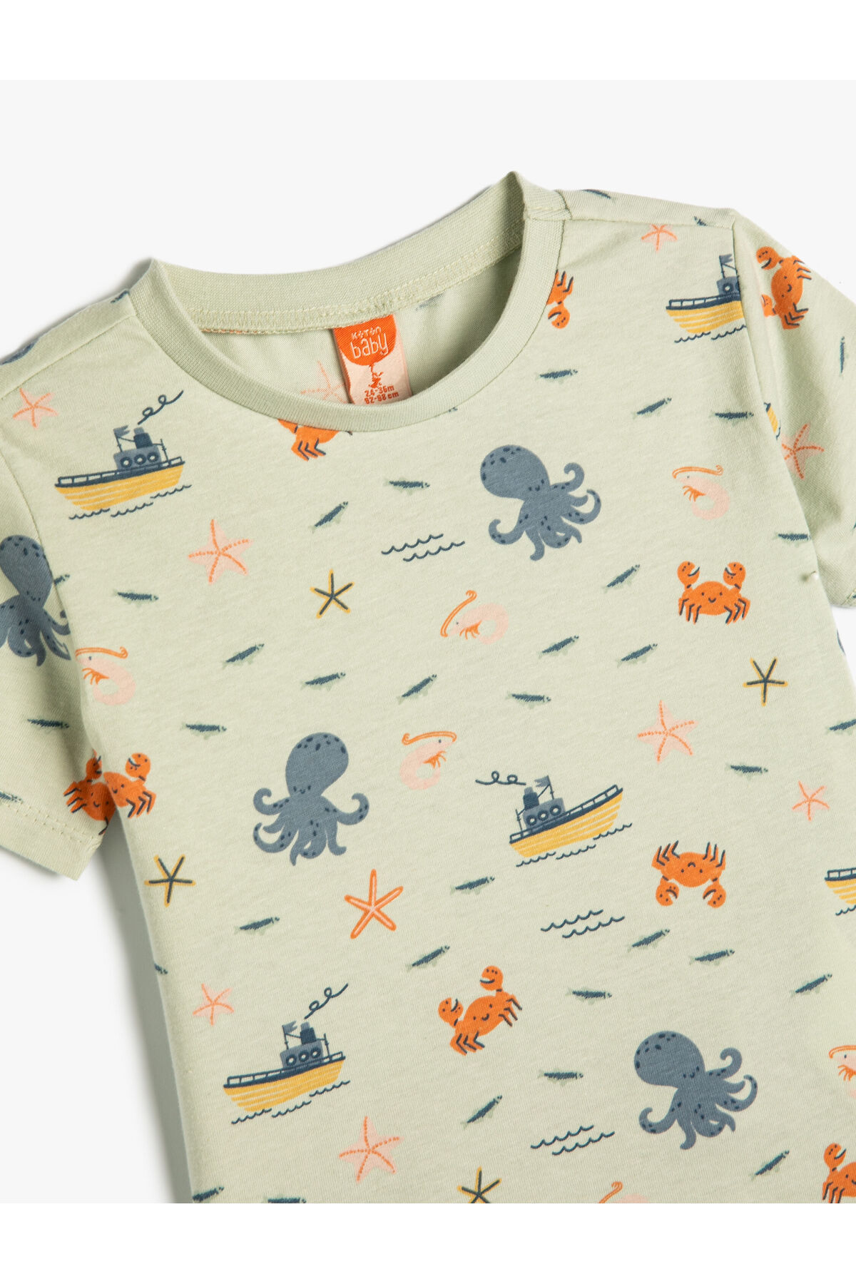 Ahtapot Baskılı Kısa Kollu Tişört Bisiklet Yaka Pamuklu Ahtapot Baskılı Kısa Kollu Tişört Bisiklet Yaka Pamuklu 4SMB10080TK 4-5 Yaş