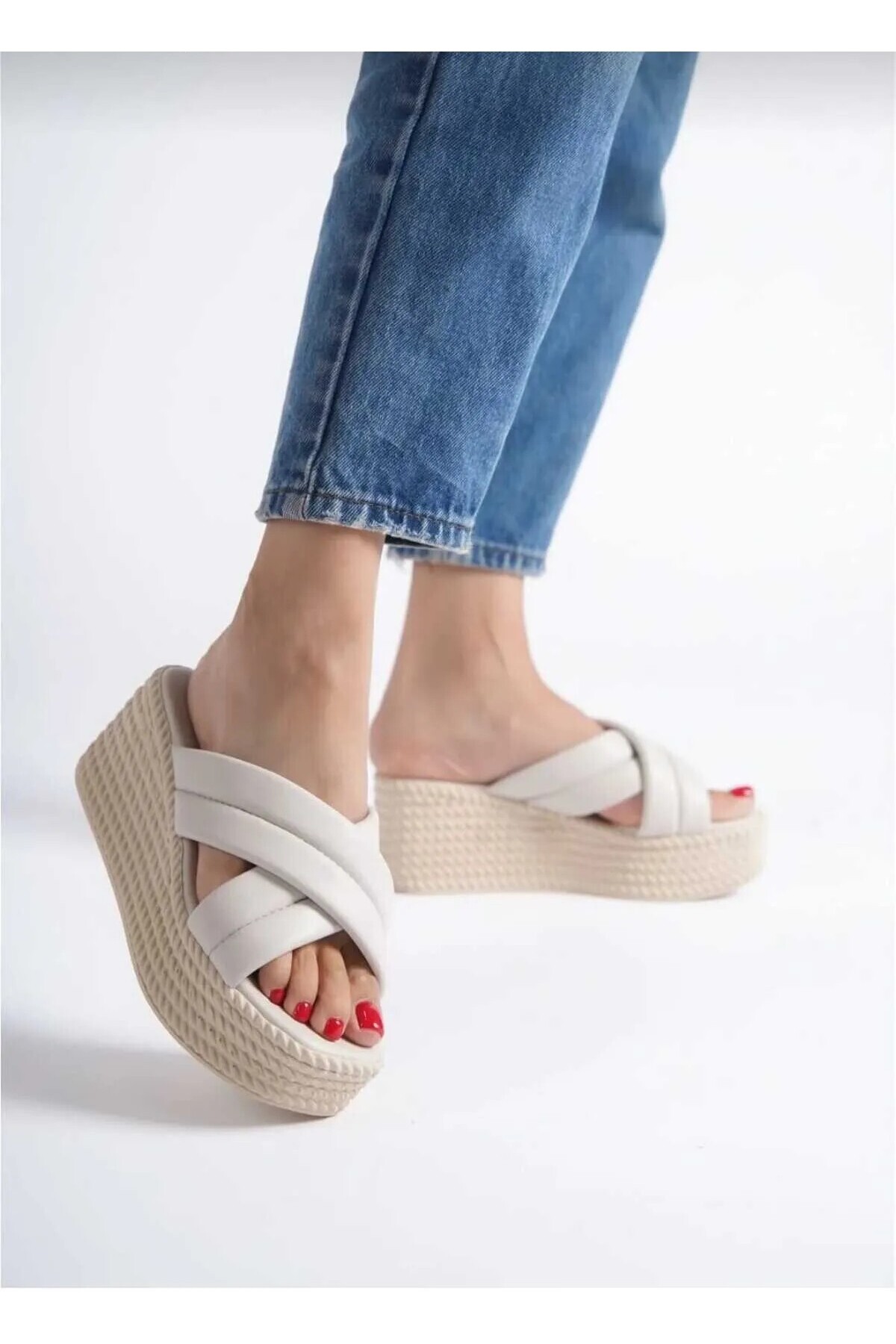 JOYMİX Dolgu Topuklu Ortopedik Taban Hasır Görünümlü Kadın Terlik KT Krem JOYMİX Dolgu Topuklu Ortopedik Taban Hasır Görünümlü Kadın Terlik KT Krem 40