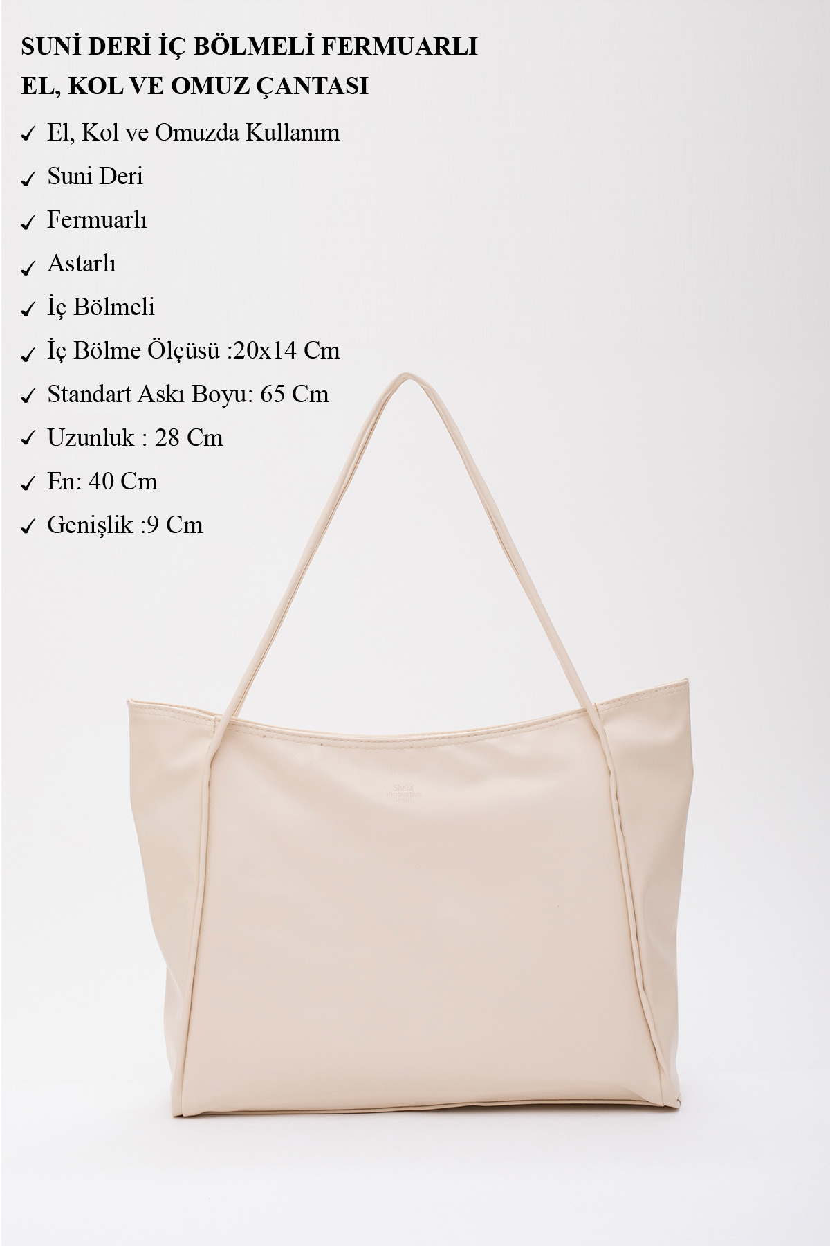 Krem Shk90 Suni Deri İç Bölmeli Fermuarlı El, Kol Ve Omuz Shopper Çanta Krem Shk90 Suni Deri İç Bölmeli Fermuarlı El, Kol Ve Omuz Shopper Çanta S225-00152 تک سایز