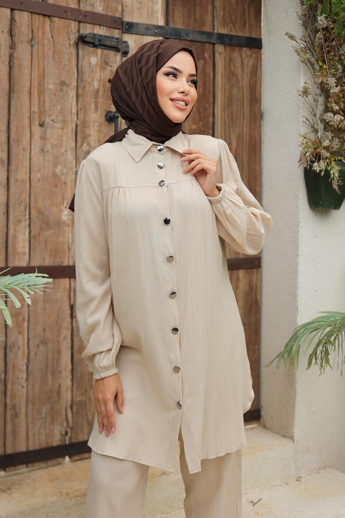 Büzgü Detaylı Tesettür Bej Takım Büzgü Detaylı Tesettür Bej Takım 4393 56