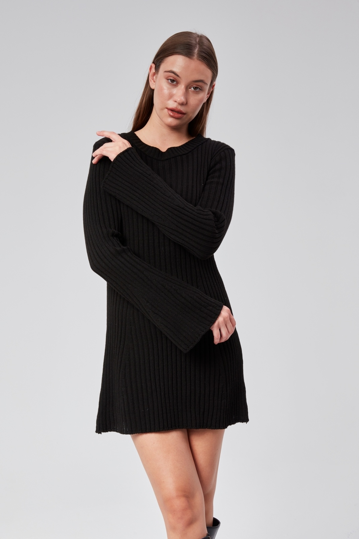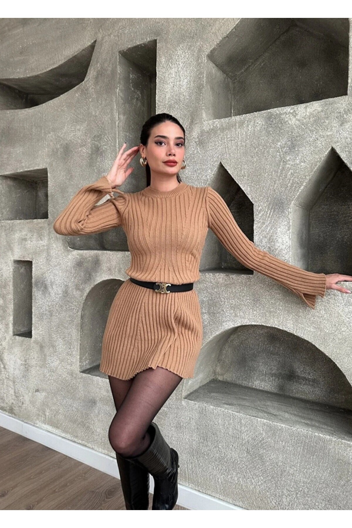 Kolu Yırtmaçlı Fitilli Örgü Mini Triko Elbise Kolu Yırtmaçlı Fitilli Örgü Mini Triko Elbise TRİKO-02 Standart