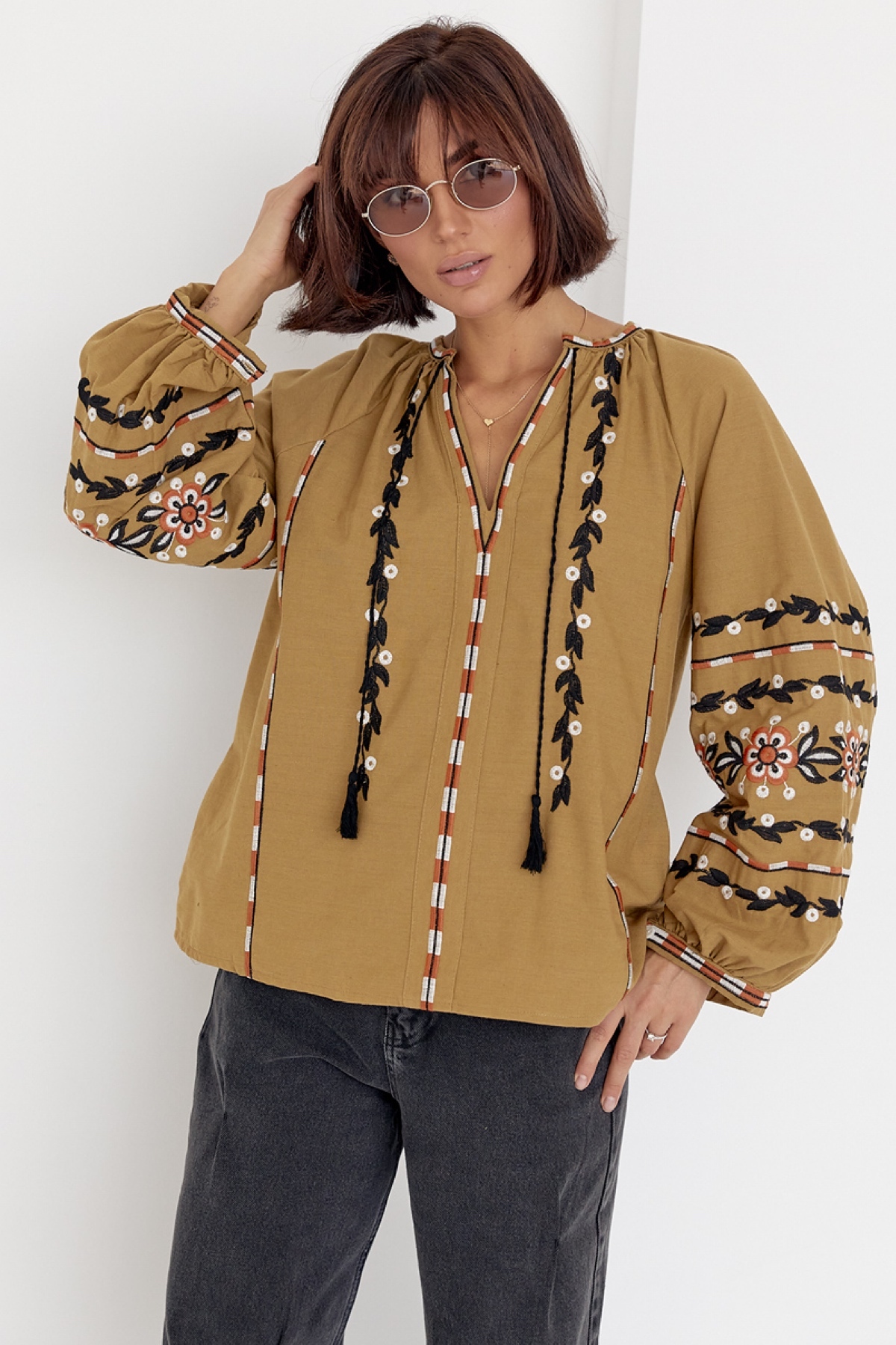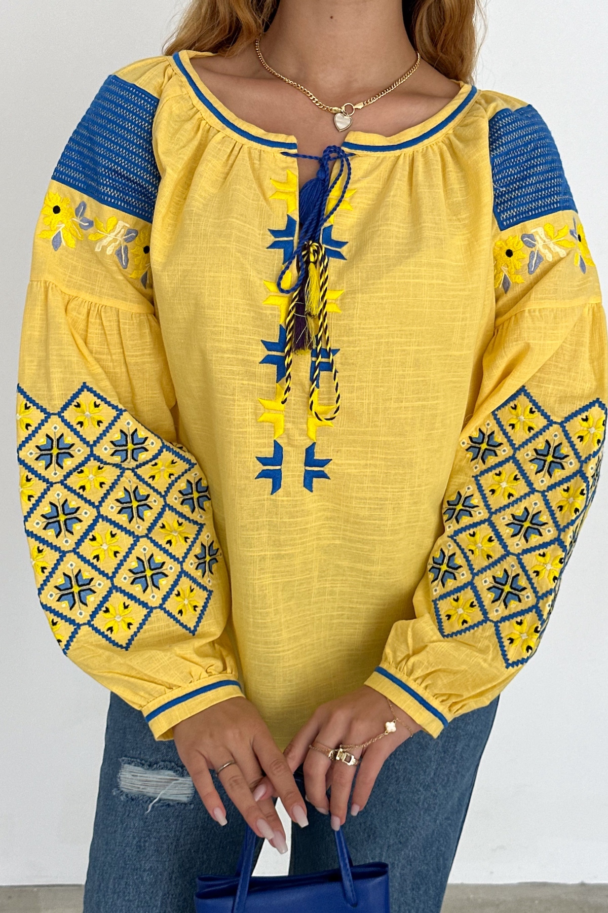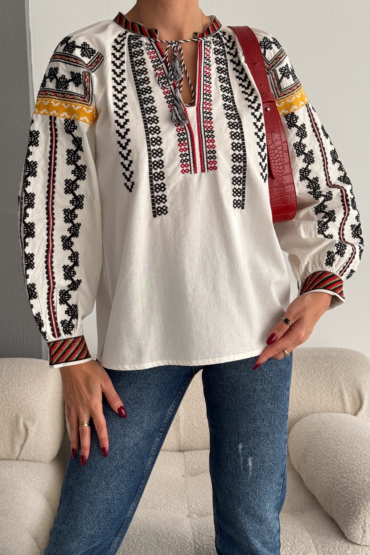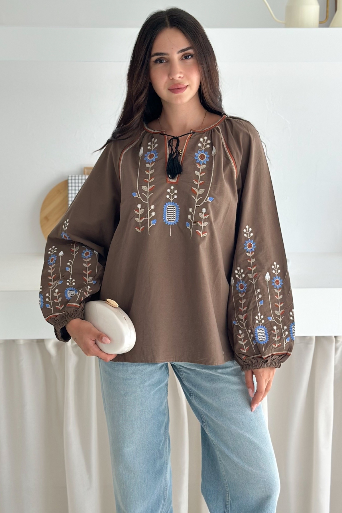 Kadın Püsküllü Nakış İşlemeli Balon Kol Bluz Kadın Püsküllü Nakış İşlemeli Balon Kol Bluz 5588 L