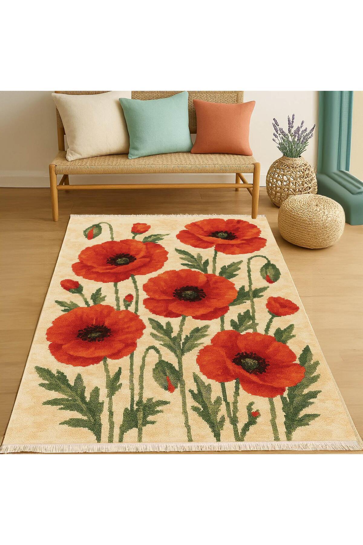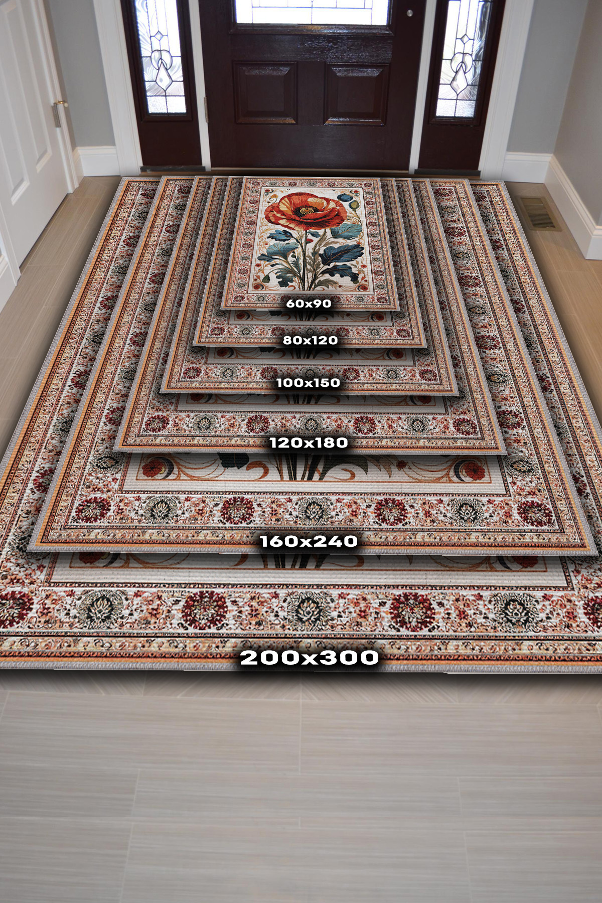 Art Deco Gelincik Vintage Halı Görünümlü Dijital Baskı Renkli Halı Rustik Çiçekli Halı Art Deco Gelincik Vintage Halı Görünümlü Dijital Baskı Renkli Halı Rustik Çiçekli Halı Plants_00026 80 x 240