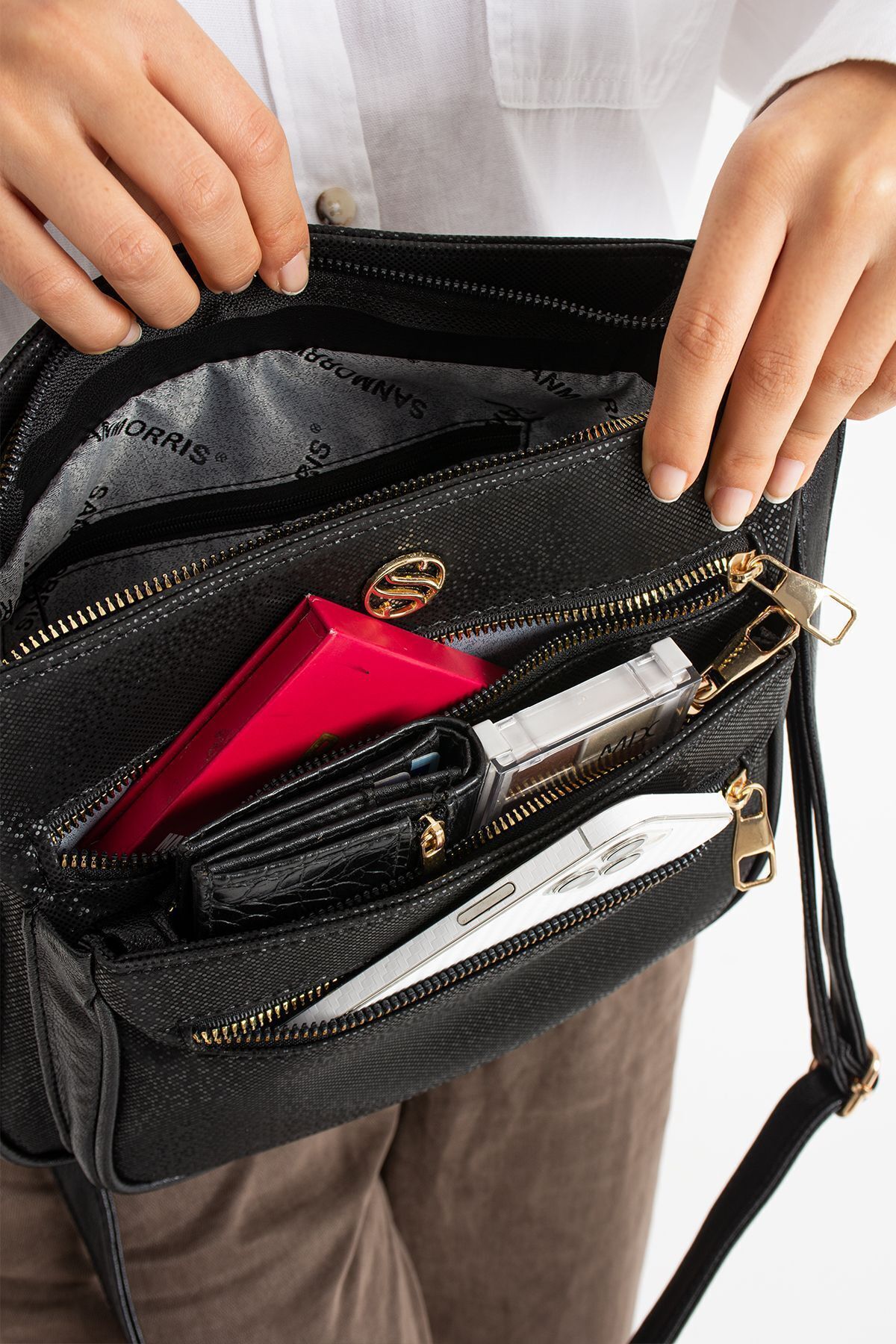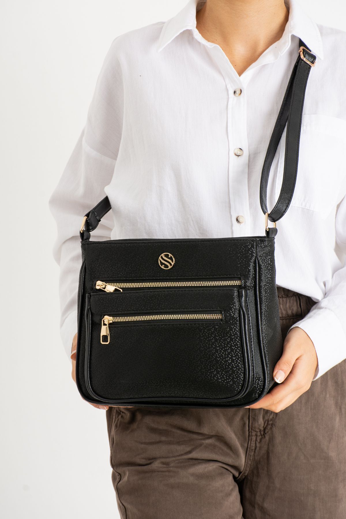 Kadın Ayarlanabilir Çapraz Askılı, Dört Cepli Siyah Mozaik Omuz Çantası Kadın Ayarlanabilir Çapraz Askılı, Dört Cepli Siyah Mozaik Omuz Çantası S-1399 Standart