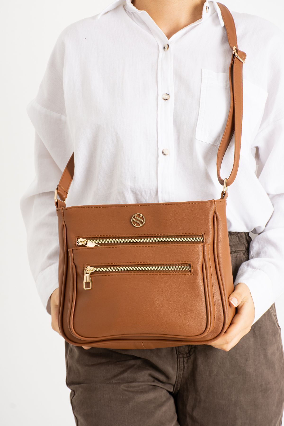 Kadın,ayarlanabilir Çapraz Askılı, Dört Cepli Taba Omuz Çantası Kadın,ayarlanabilir Çapraz Askılı, Dört Cepli Taba Omuz Çantası S-1399 Orta Boy