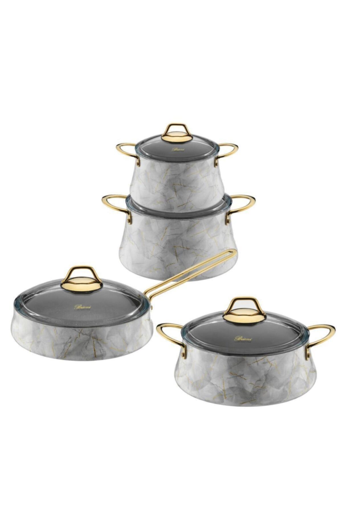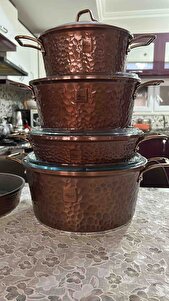 Copper 9 Parça Yanmaz Yapışmaz Bakır Görünümlü Granit Tencere Seti Copper 9 Parça Yanmaz Yapışmaz Bakır Görünümlü Granit Tencere Seti CP-151 تک سایز
