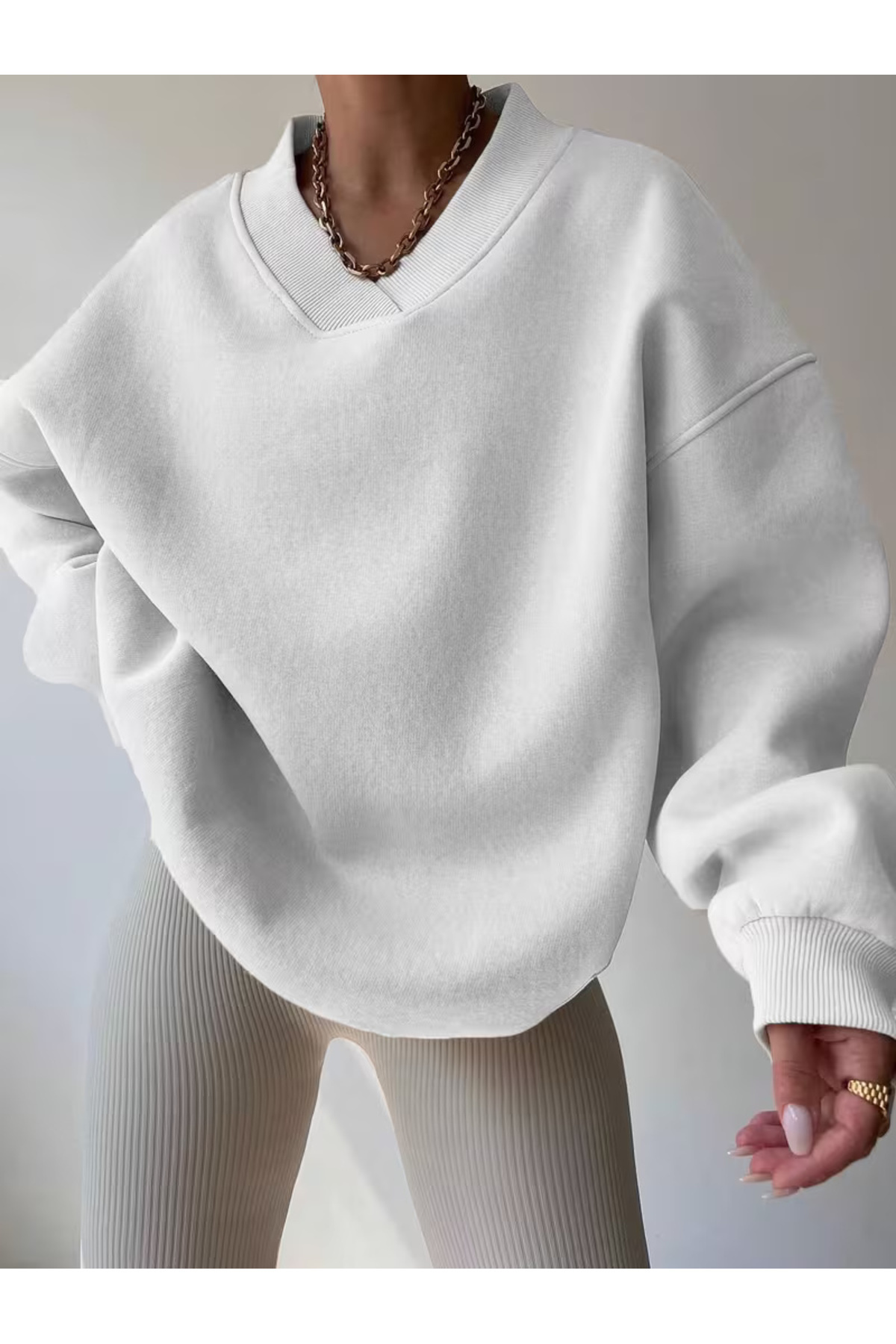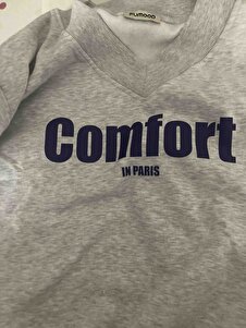 Kadın Gri Renk V Yaka Comfort Baskılı Oversize Sweatshirt Kadın Gri Renk V Yaka Comfort Baskılı Oversize Sweatshirt V-comfort XL
