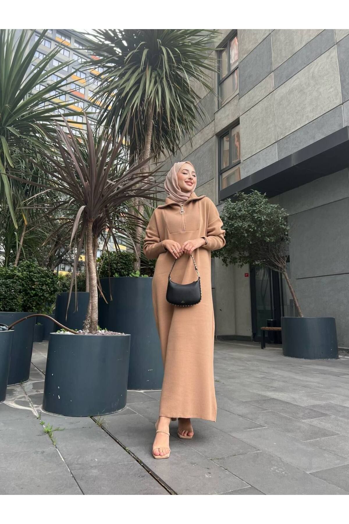 Fermuarlı Kıvrık Yaka Triko Elbise Fermuarlı Kıvrık Yaka Triko Elbise Aras764 Standart