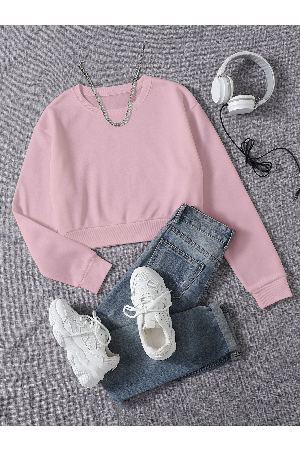 Düz Kışlık Sweatshirt - Pembe Şardonlu Oversize Bisiklet Yaka Düz Kışlık Sweatshirt - Pembe Şardonlu Oversize Bisiklet Yaka BOSSWT-LS XL