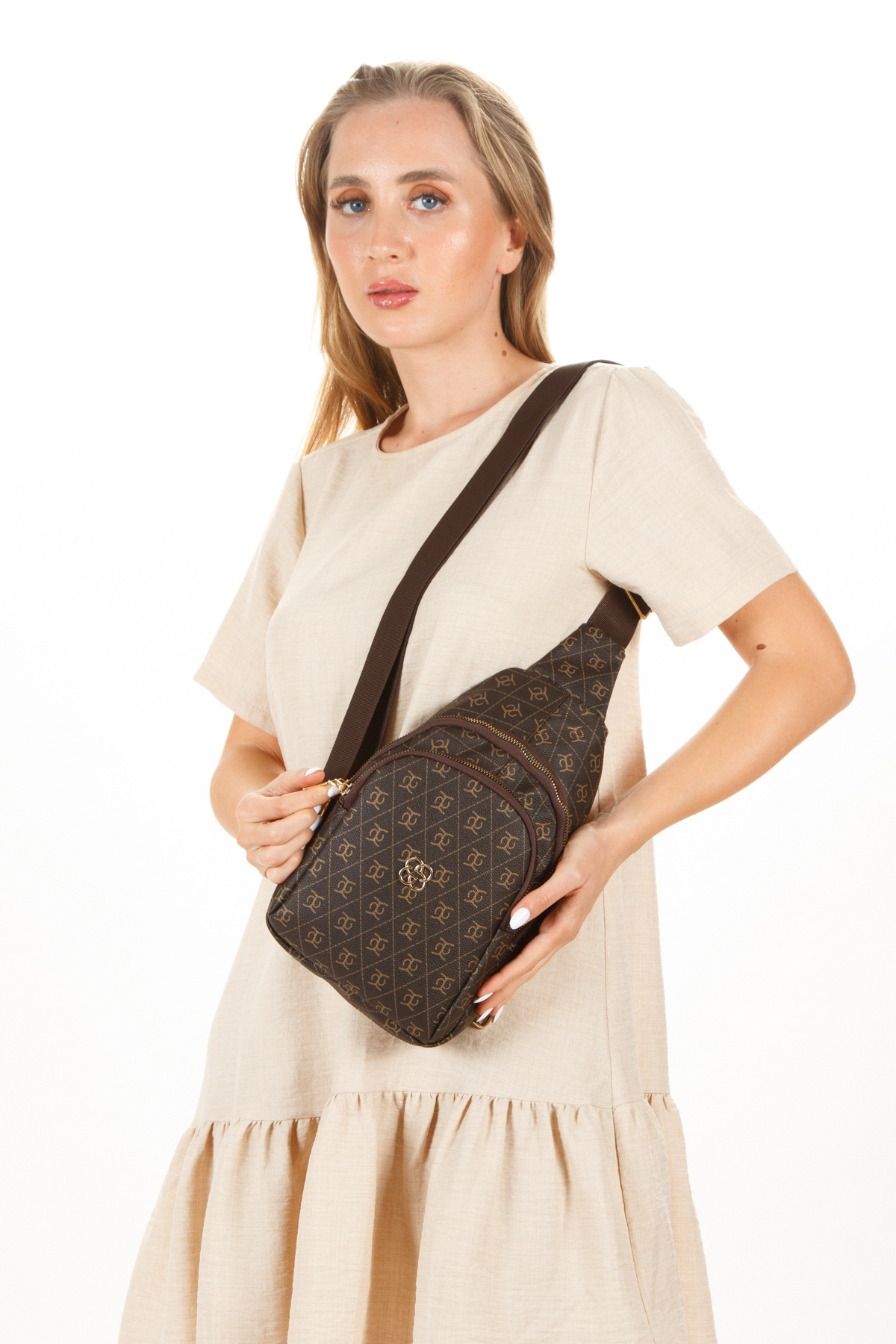 Kadın Kahverengi Desenli Çapraz Omuz Ve Bel Çantası Kadın Kahverengi Desenli Çapraz Omuz Ve Bel Çantası nwp-desenl-bag تک سایز