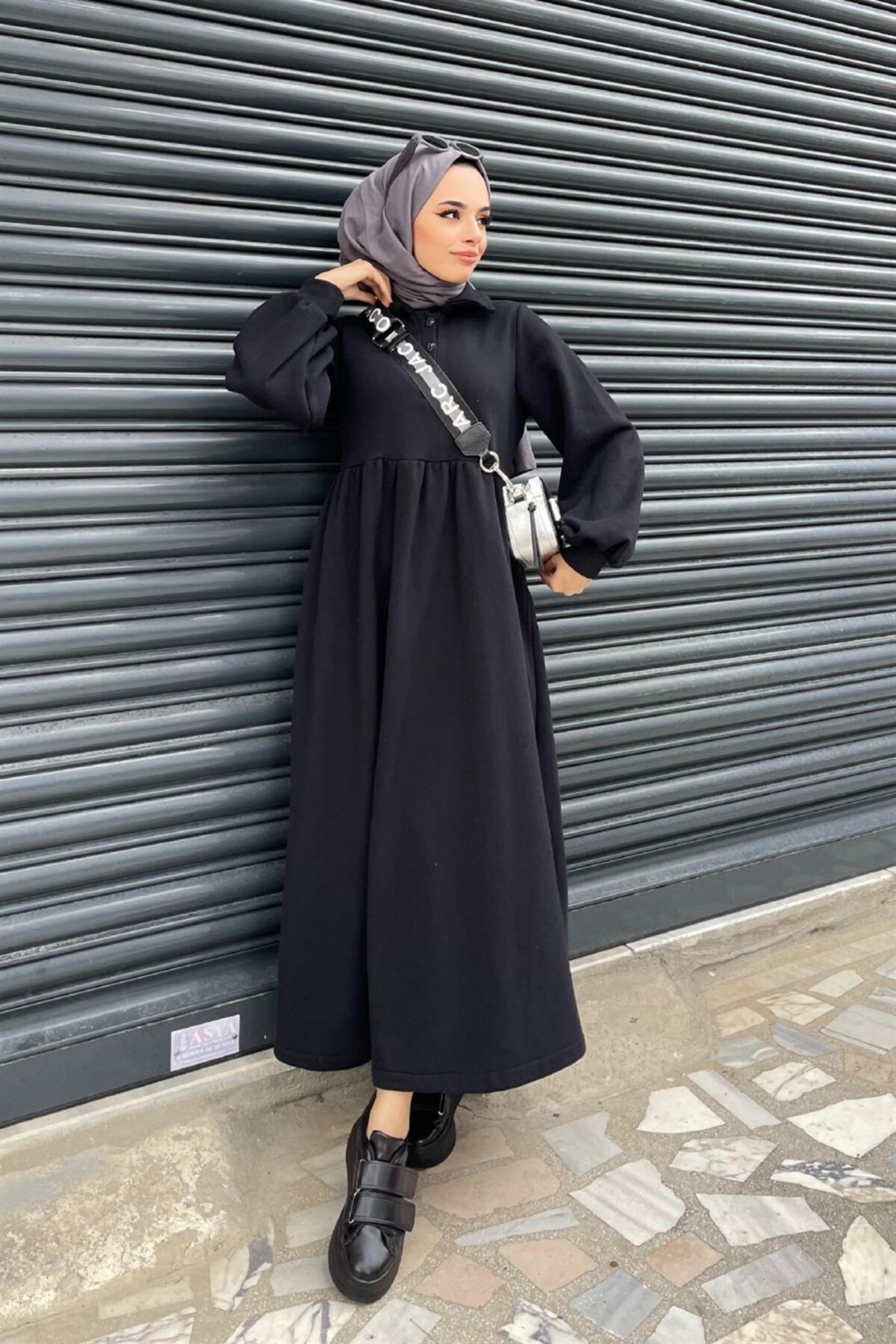 Önü Düğmeli Triko Elbise Bej Önü Düğmeli Triko Elbise Bej 8526 تک سایز