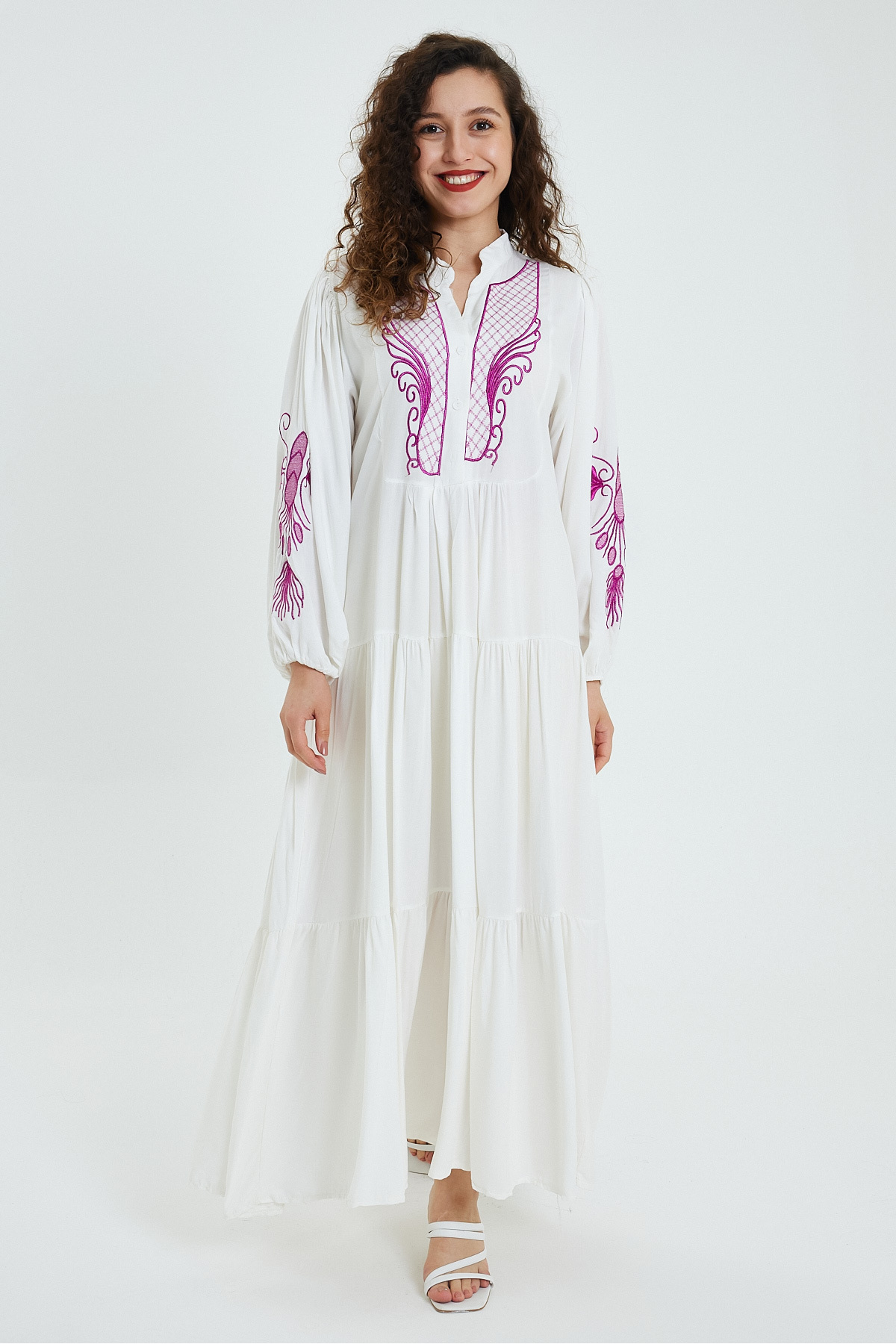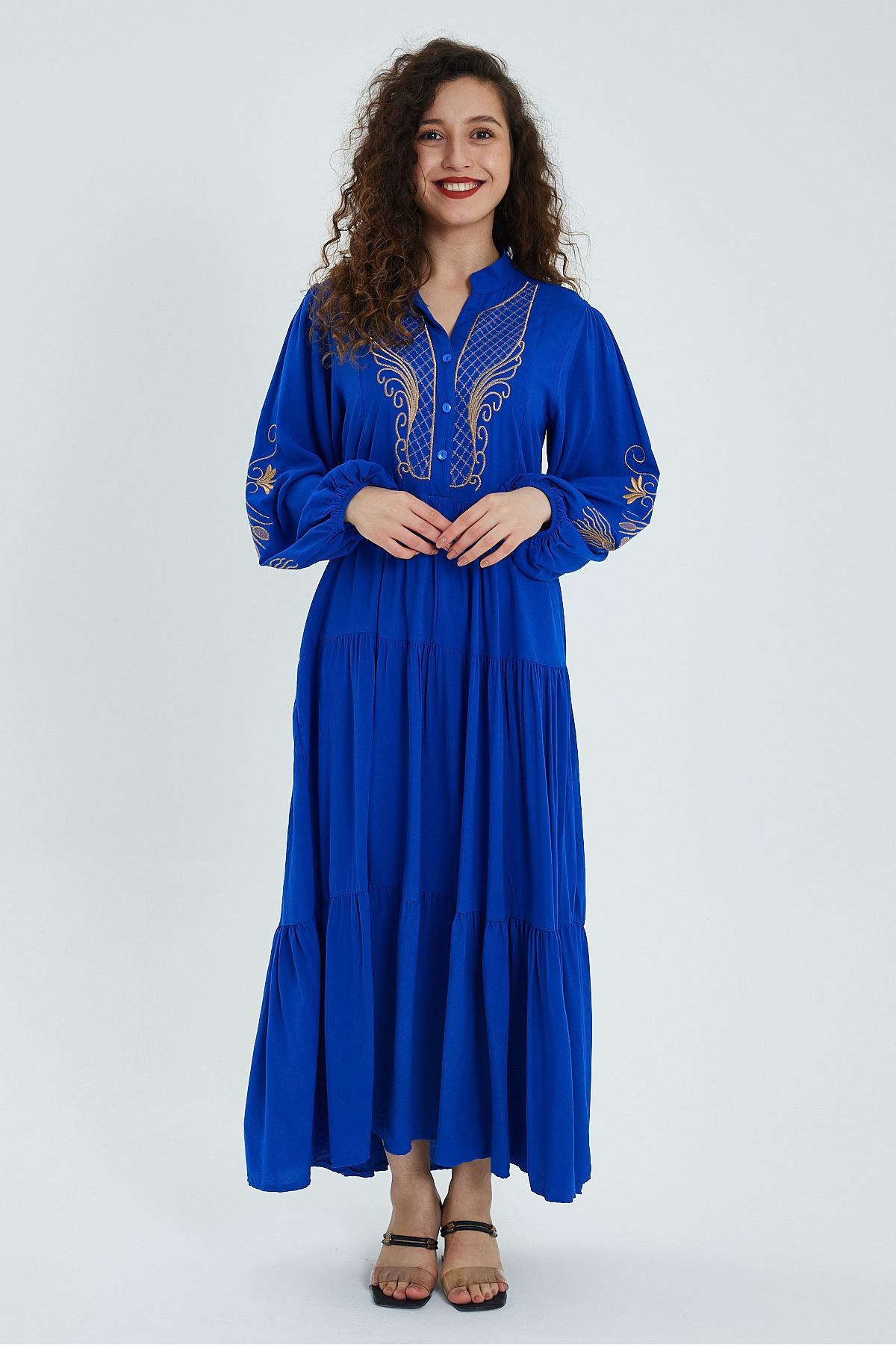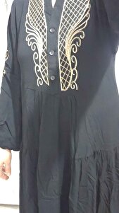 Kadın Siyah Varak Nakış İşlemeli Düğmeli Patlı Yakalı Uzun Kollu Uzun Etnik Otantik Elbise Kadın Siyah Varak Nakış İşlemeli Düğmeli Patlı Yakalı Uzun Kollu Uzun Etnik Otantik Elbise 941-VW 2XL
