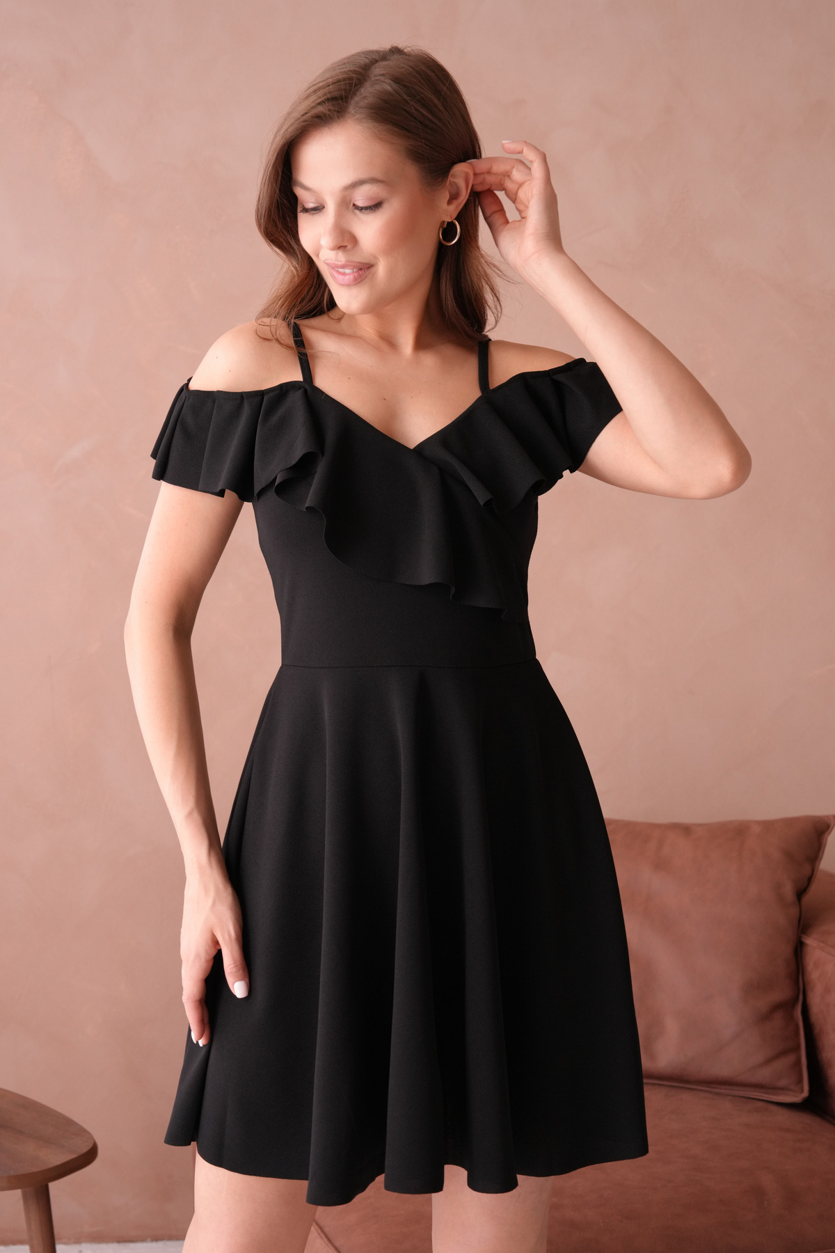 Kadın Yakası Volan Detaylı İnce Askılı Esnek Kumaş Kiloş Siyah Abiye Elbise 077 Kadın Yakası Volan Detaylı İnce Askılı Esnek Kumaş Kiloş Siyah Abiye Elbise 077 SMT-EMR-077 42