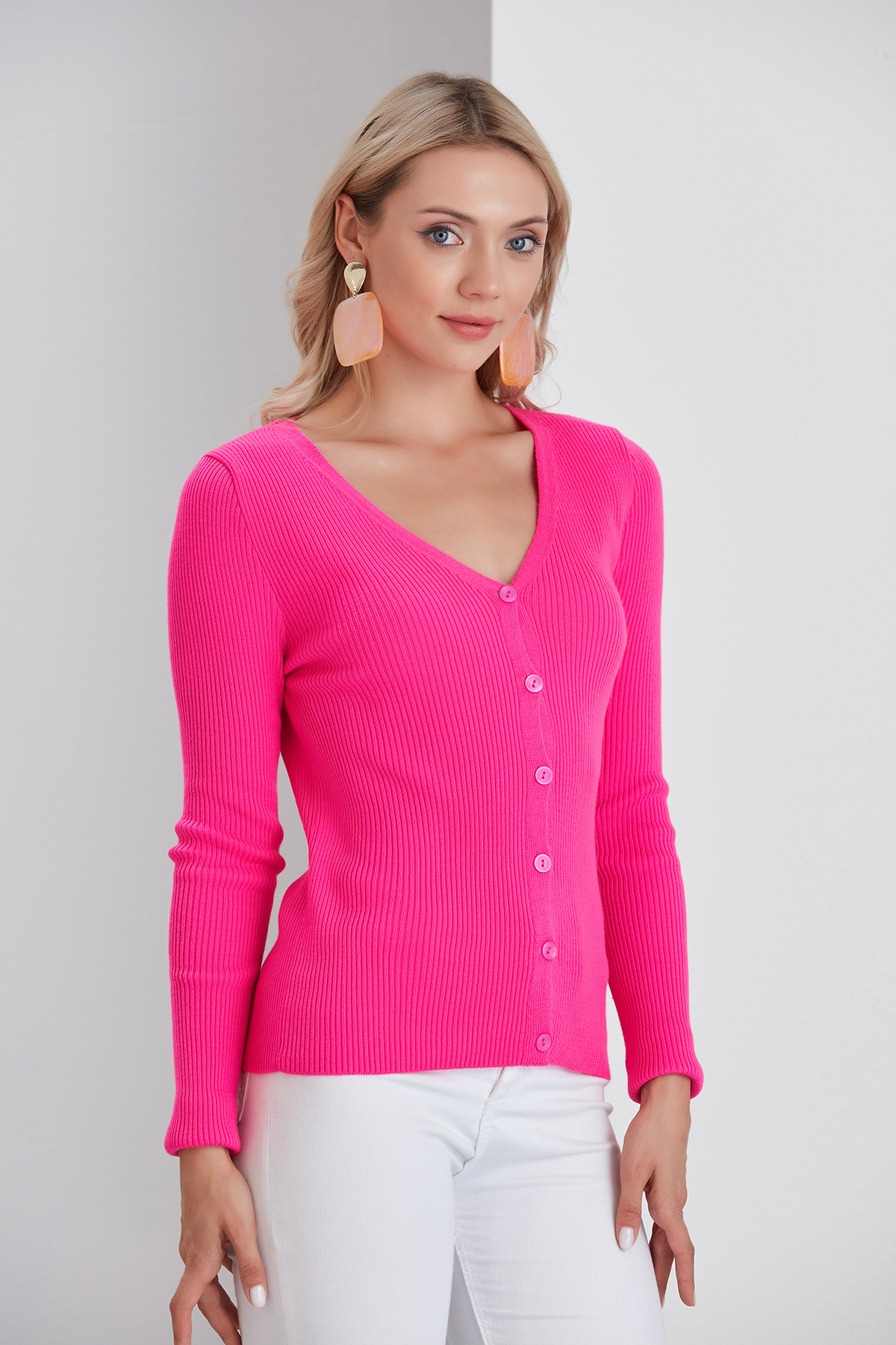 İnce Fitilli Hırka Fuşya İnce Fitilli Hırka Fuşya 8015 Standart