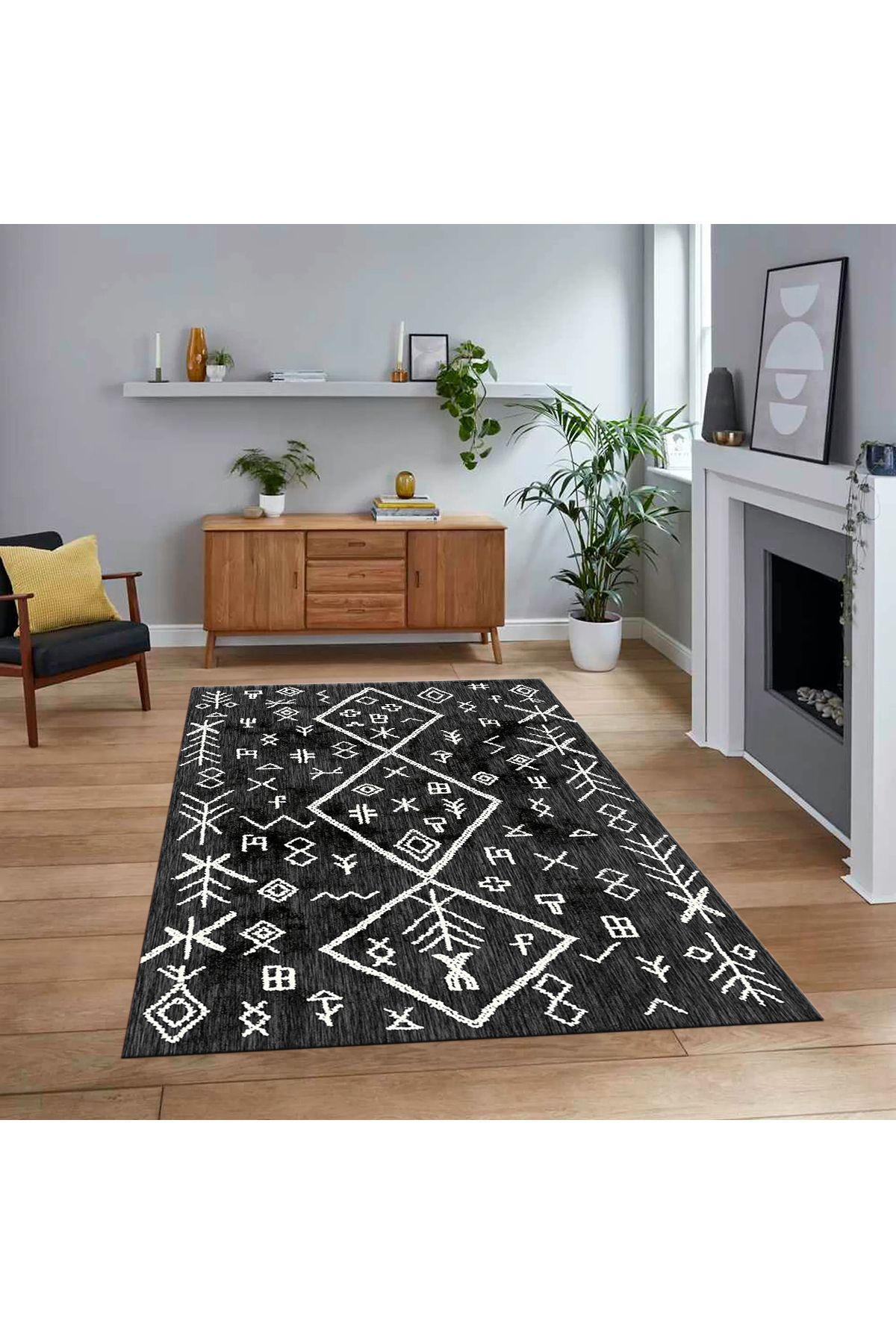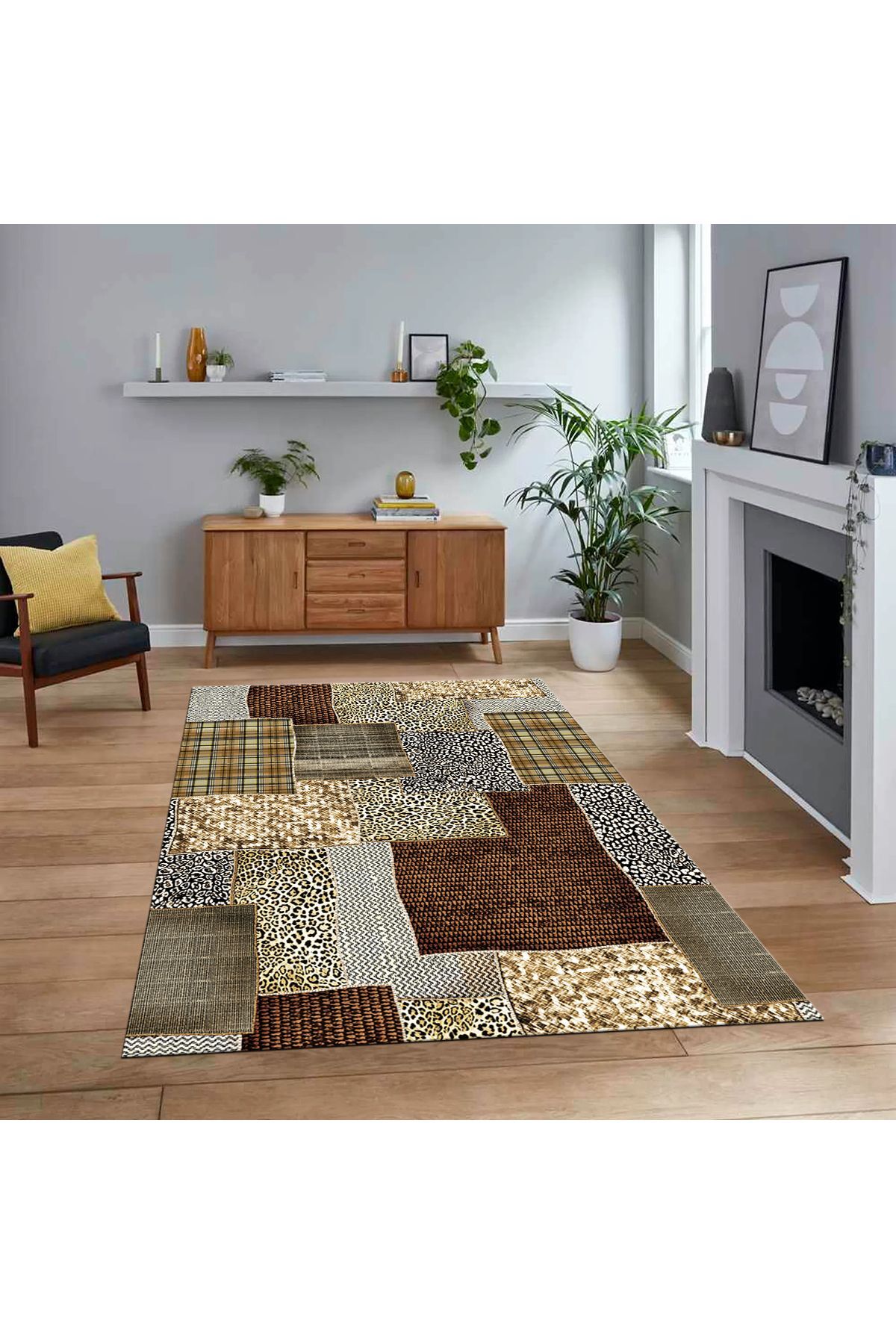 Dijital Baskılı Kaymaz Yıkanabilir İskandinav Desen Yolluk Salon Halısı, V-İSKANDİNAV-16-KAHVE, Dijital Baskılı Kaymaz Yıkanabilir İskandinav Desen Yolluk Salon Halısı, V-İSKANDİNAV-16-KAHVE, 160 x 230