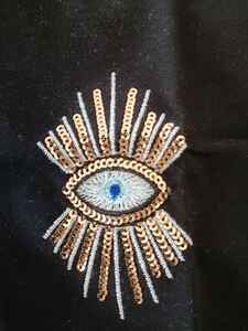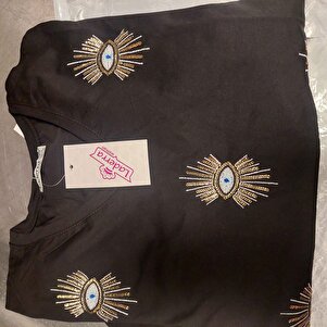 Kadın Siyah V Yaka Göz Pul Ve Nakış Işlemeli T-shirt Kadın Siyah V Yaka Göz Pul Ve Nakış Işlemeli T-shirt PulPayetTişört L