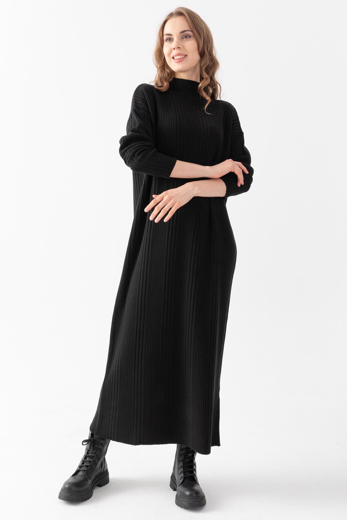 Kadın Siyah Fitilli Oversize Triko Elbise 811134 Kadın Siyah Fitilli Oversize Triko Elbise 811134 Standart
