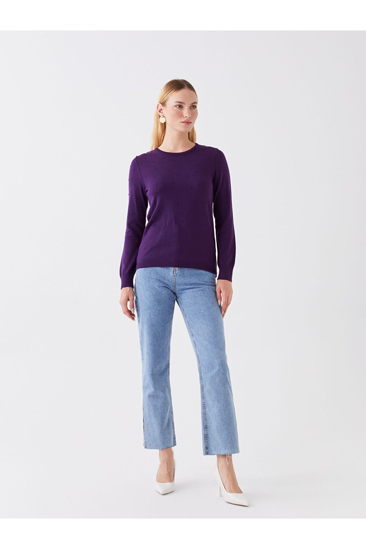 Bisiklet Yaka Kendinden Desenli Uzun Kollu Kadın Triko Kazak Bisiklet Yaka Kendinden Desenli Uzun Kollu Kadın Triko Kazak W33286Z8 - HKZ 3XL
