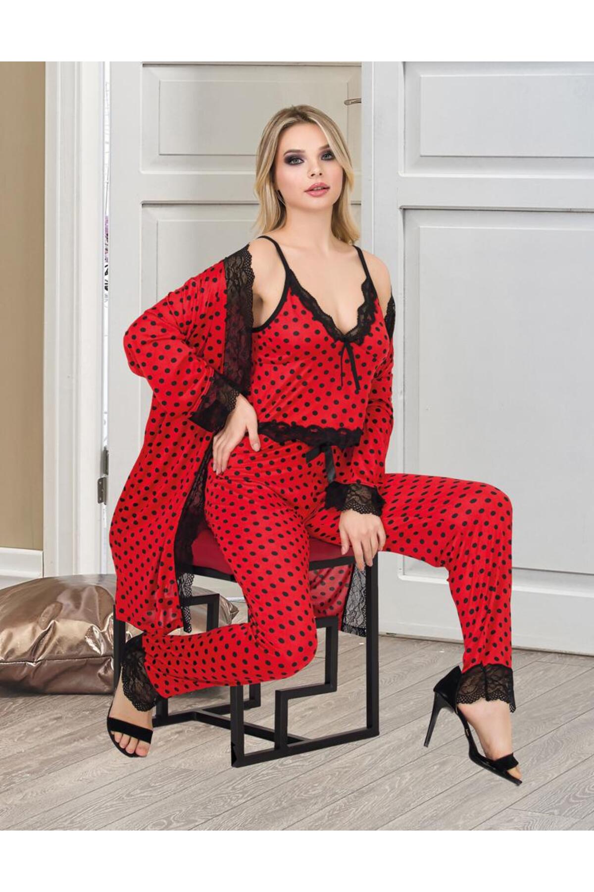 Kadın Seksi Fantezi Erotik Dantelli PamukSaten LuxKalite Askılı Pijama Sabahlık Gecelik Set 3 Parça Kadın Seksi Fantezi Erotik Dantelli PamukSaten LuxKalite Askılı Pijama Sabahlık Gecelik Set 3 Parça ED-135 L/XL