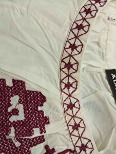 Kadın Beyaz Bisiklet Yaka Kolları Volanlı Full Nakışlı Dokuma Bluz ALC-X11450 Kadın Beyaz Bisiklet Yaka Kolları Volanlı Full Nakışlı Dokuma Bluz ALC-X11450 L
