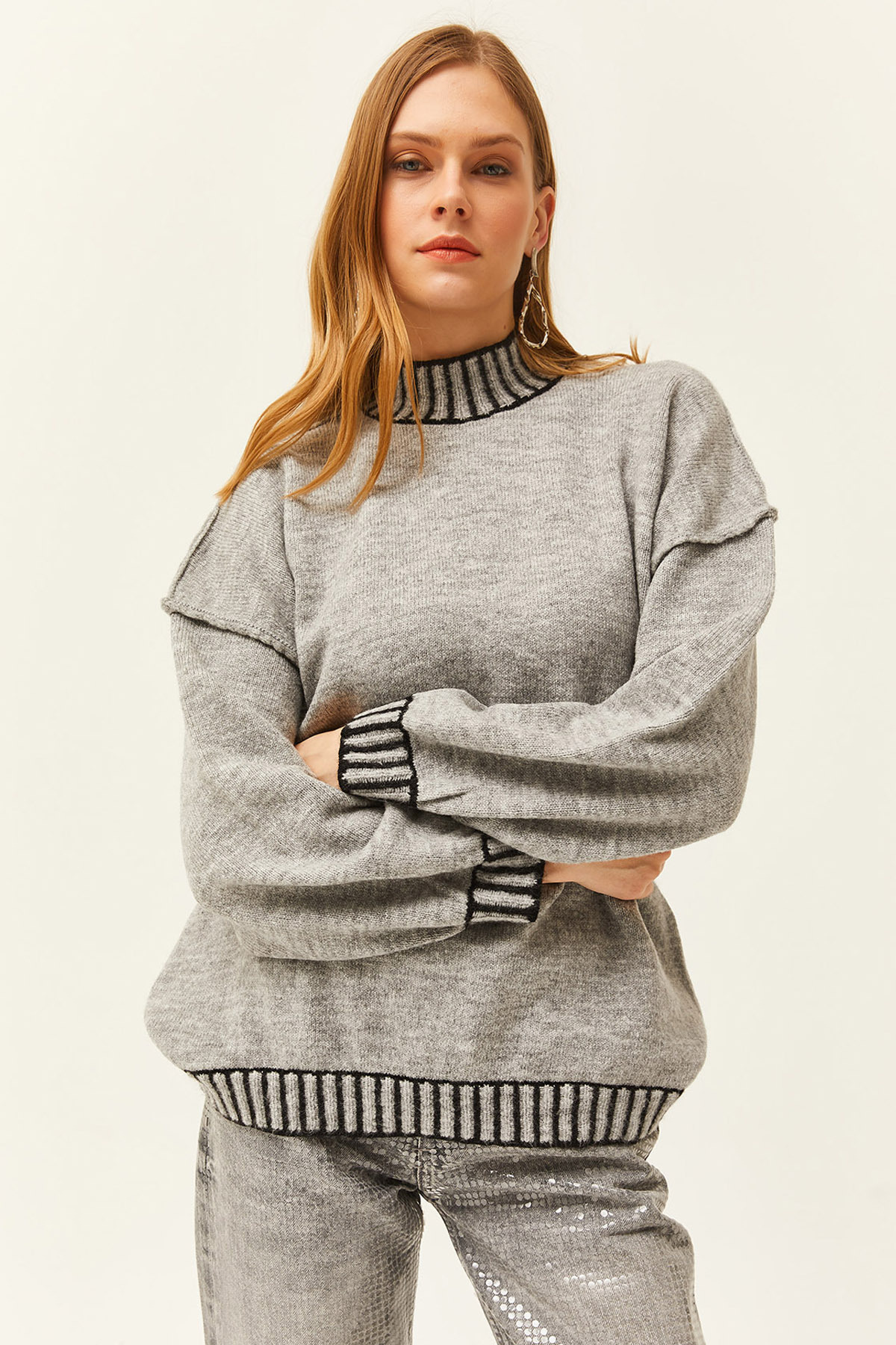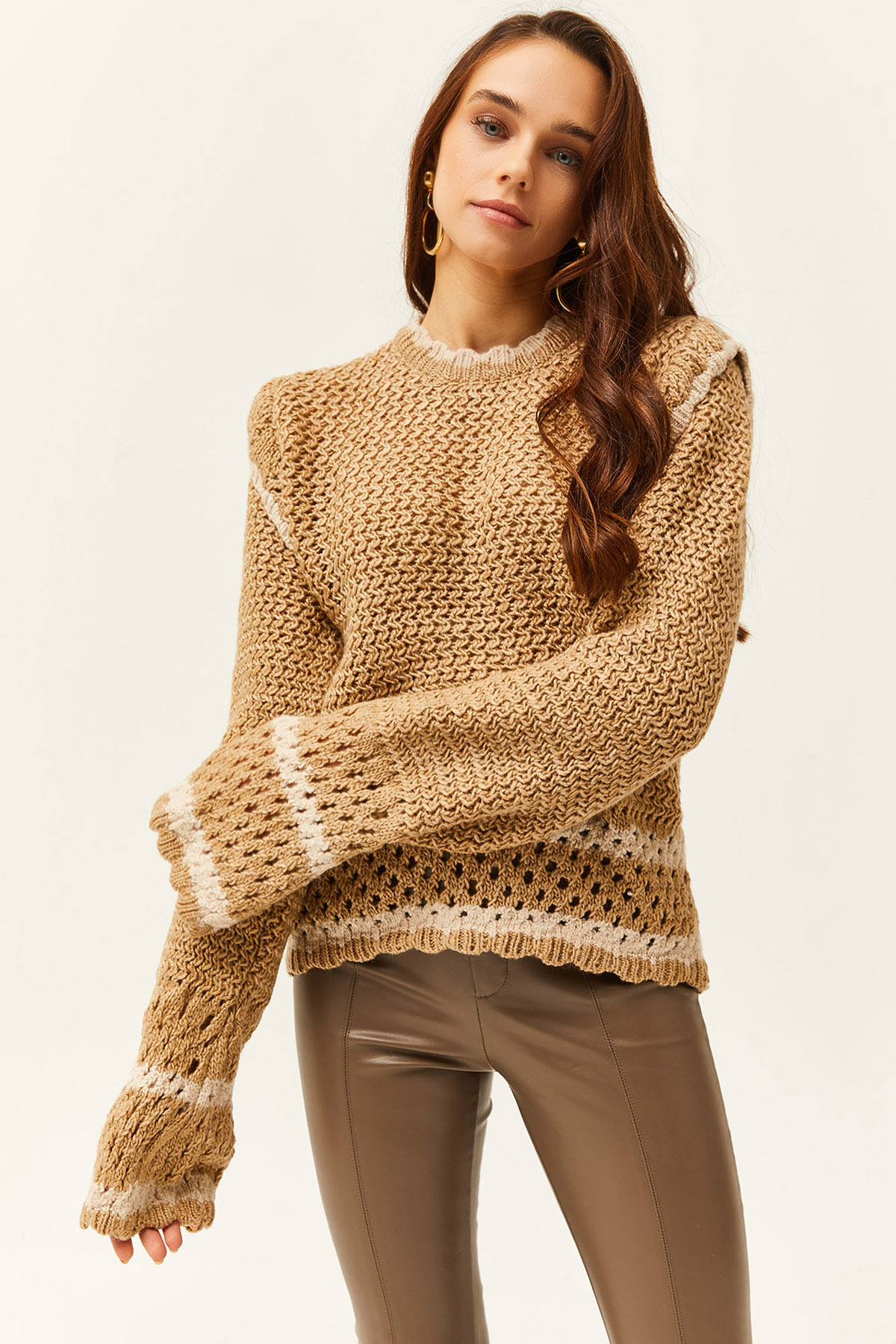 Kadın Bisküvi Yaka ve Etek Detaylı Triko Kazak KZK-19000760 Kadın Bisküvi Yaka ve Etek Detaylı Triko Kazak KZK-19000760 Standart