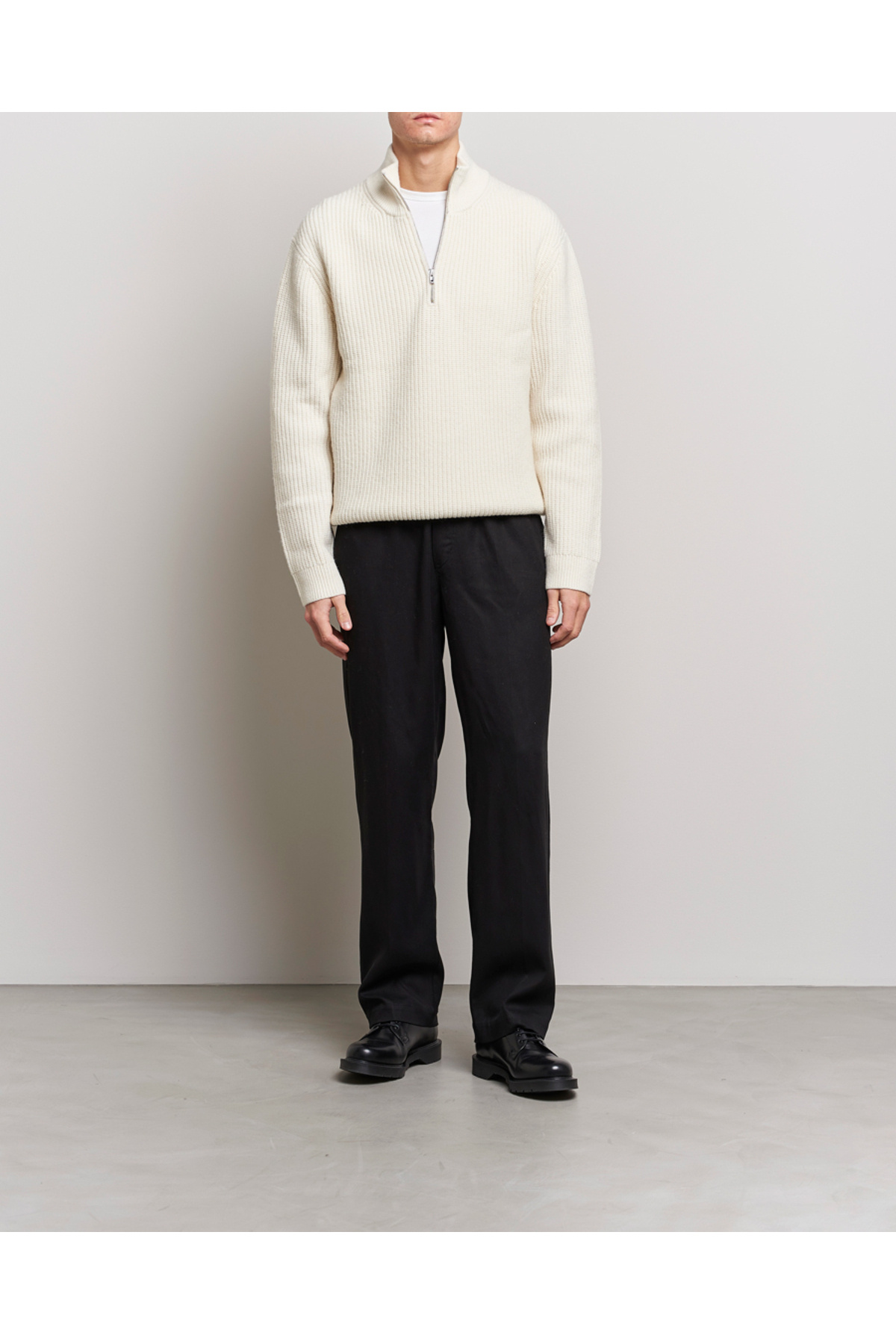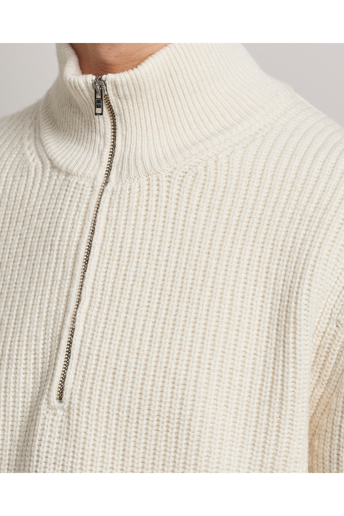 Beyaz Erkek Oversize Fermuarlı Balıkçı Triko Kazak Beyaz Erkek Oversize Fermuarlı Balıkçı Triko Kazak TTRZ19183 XL