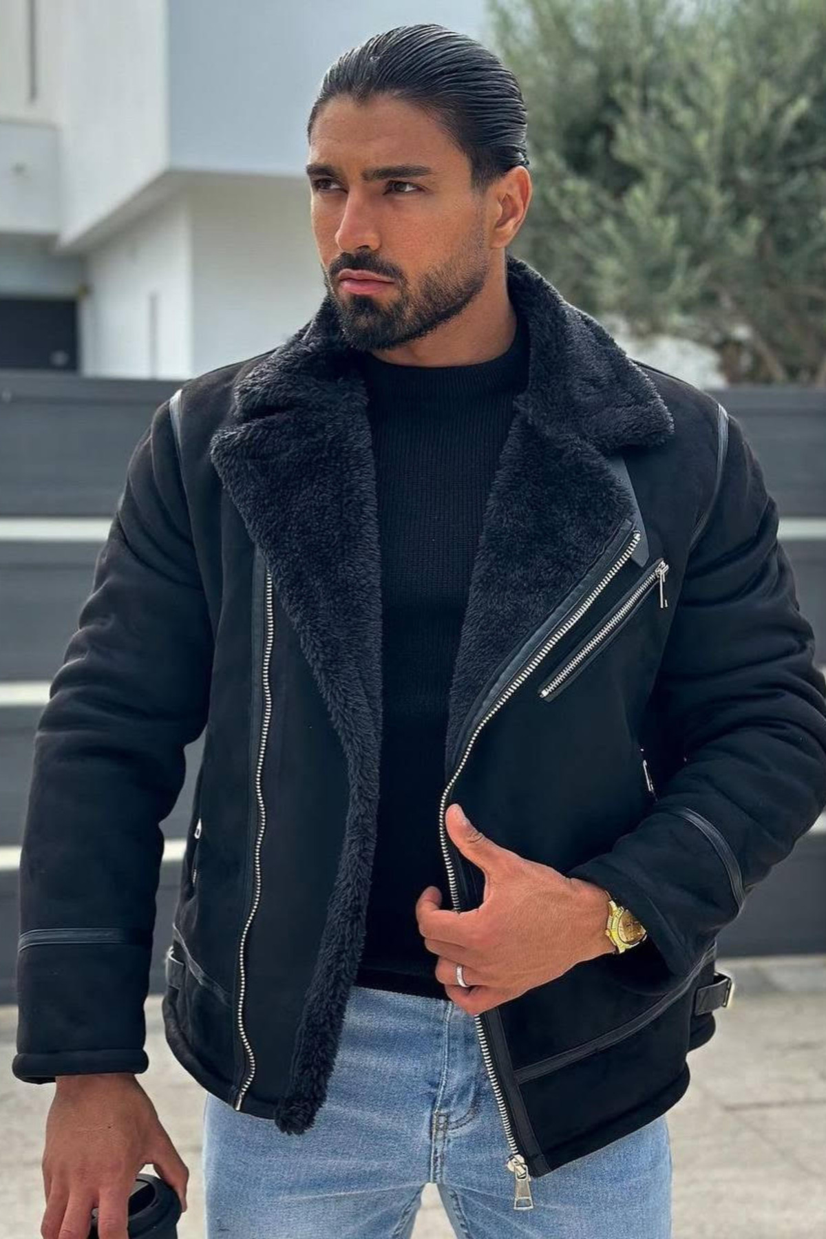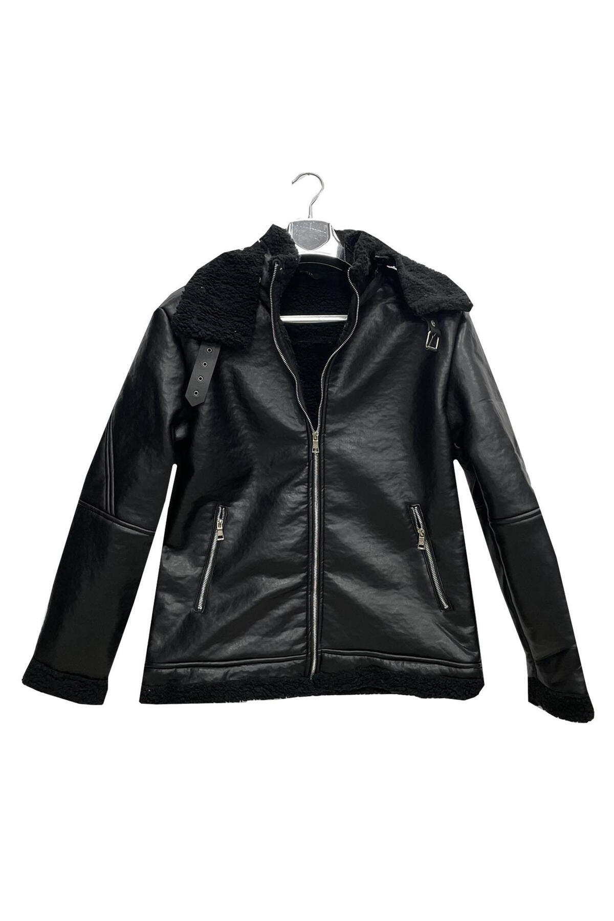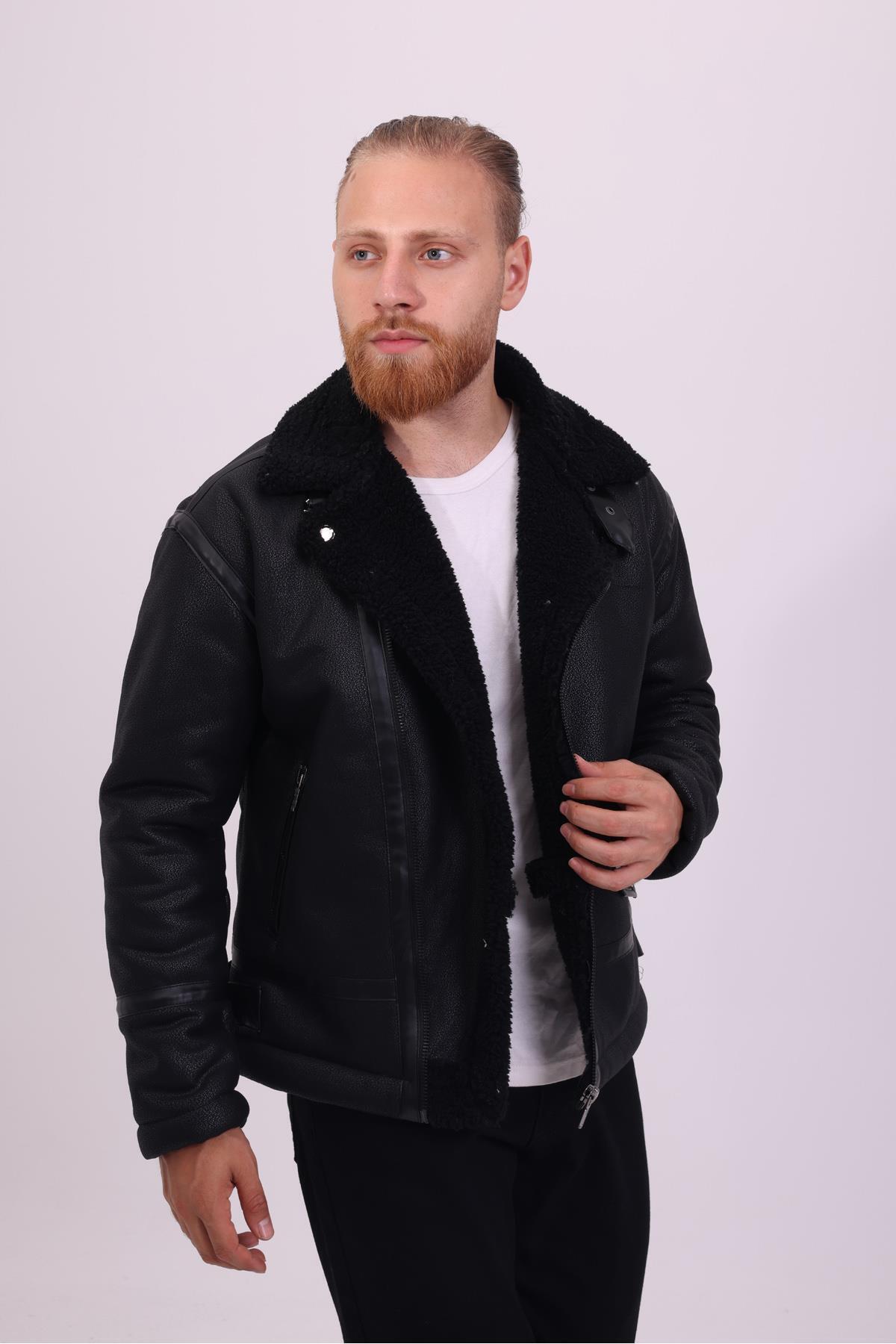 Erkek Siyah Suni Kürk Detaylı Deri Mont -FN204430 Erkek Siyah Suni Kürk Detaylı Deri Mont -FN204430 2XL