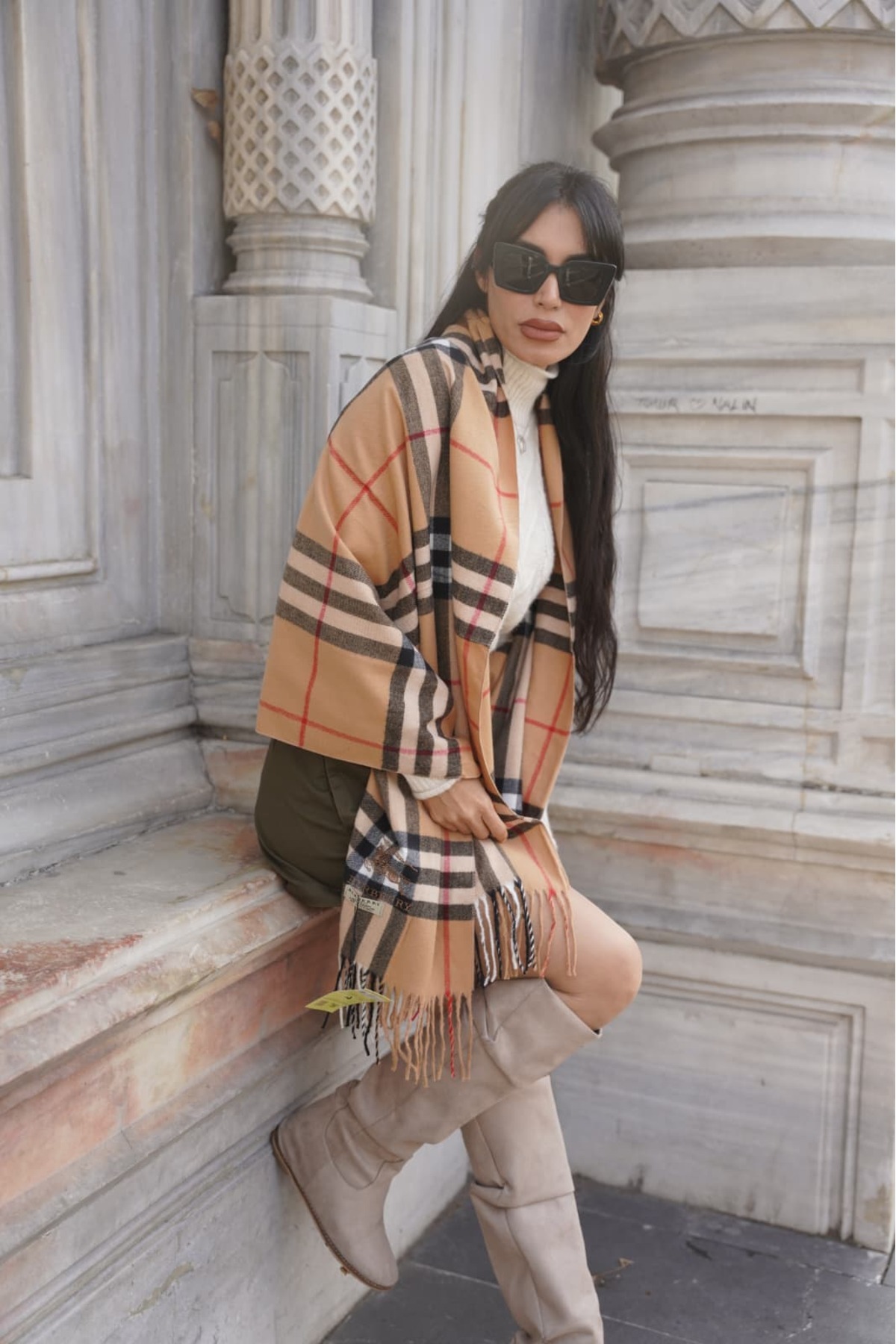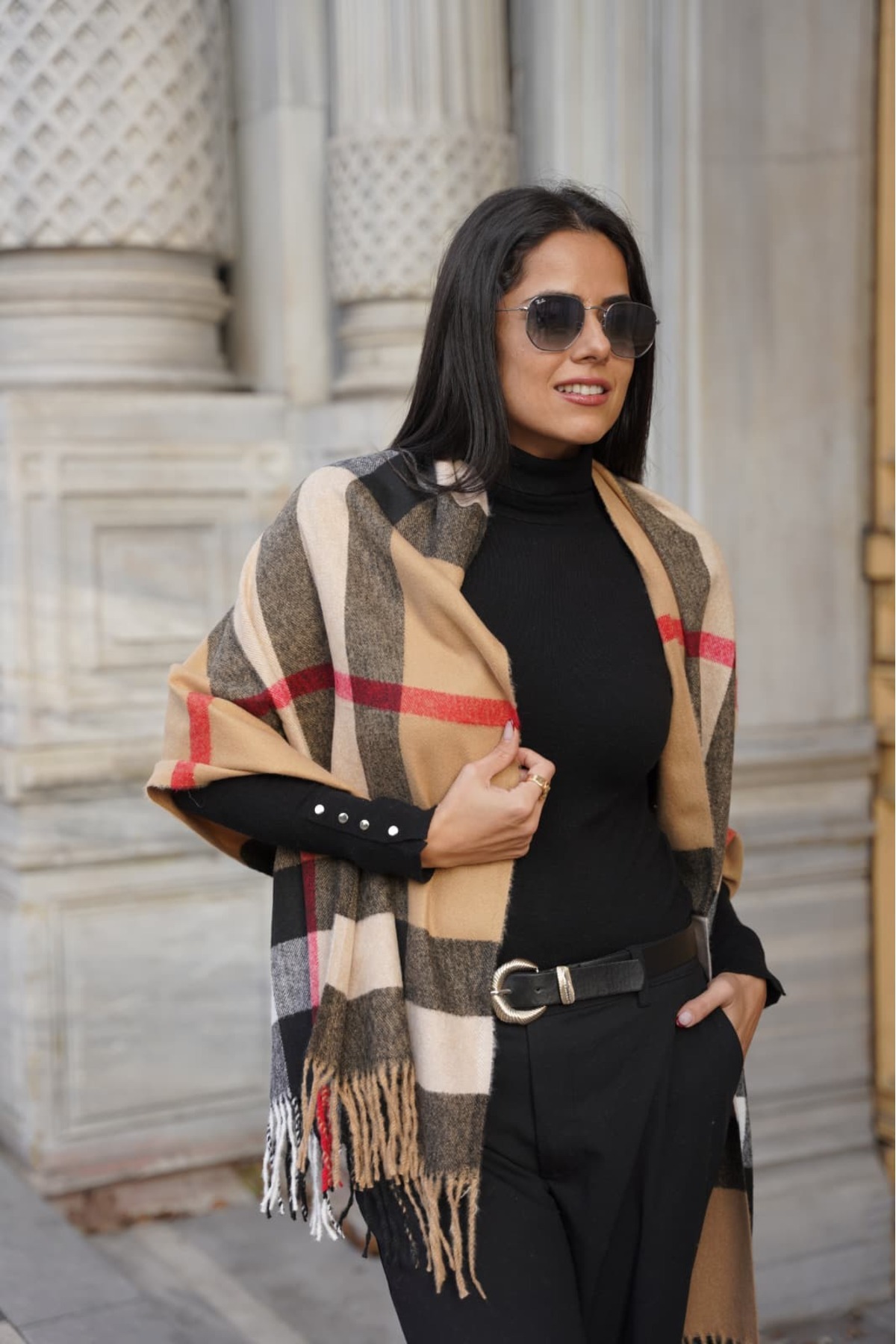Çift Taraflı Ekoseli Yünlü Omuz Şalı - 75x175cm - Kışlık Şal Çift Taraflı Ekoseli Yünlü Omuz Şalı - 75x175cm - Kışlık Şal PZ5801 75 x 175