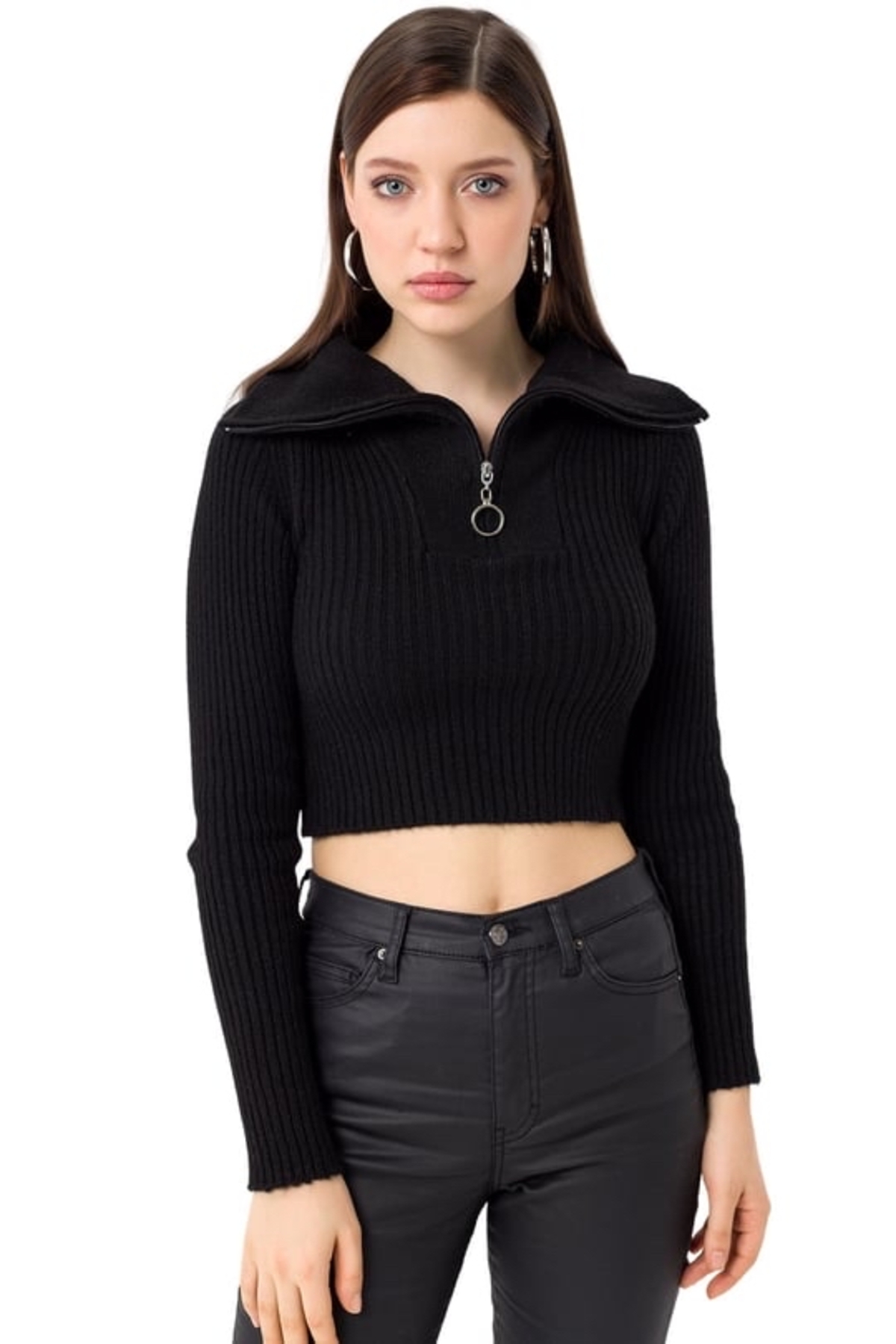 Siyah Fermuarlı Crop Triko Hırka Siyah Fermuarlı Crop Triko Hırka 931075 Standart