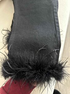 Tüy detaylı Yüksek Bel Tasarım Mom Jean Malibu suni tüylü Püsküllü paça denim Tüy detaylı Yüksek Bel Tasarım Mom Jean Malibu suni tüylü Püsküllü paça denim T90481 42