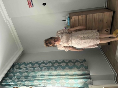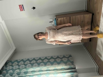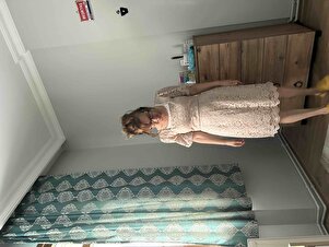 Krem Fransız Dantel Balon Kol Kare Yaka Mini Abiye Elbise Krem Fransız Dantel Balon Kol Kare Yaka Mini Abiye Elbise DNTL1003FRNZ L