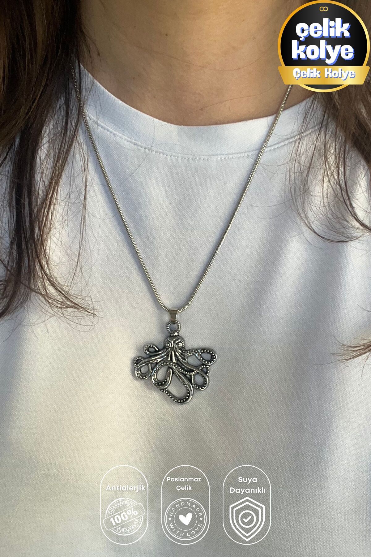 Paslanmaz Çelik Madalyon Ahtapot Figür Gümüş Rengi Parlak Kararmaz Çelik Kolye Unisex Kolye Paslanmaz Çelik Madalyon Ahtapot Figür Gümüş Rengi Parlak Kararmaz Çelik Kolye Unisex Kolye KC-KL-K0349 تک سایز