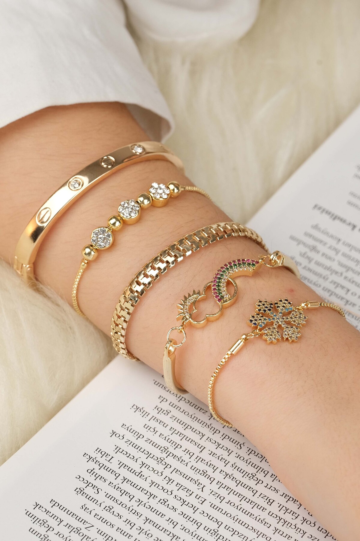 KADIN 5 Lİ KOMBİN ORİJİNAL ALTIN KAPLAMA BİLEKLİK SETİ KADIN 5 Lİ KOMBİN ORİJİNAL ALTIN KAPLAMA BİLEKLİK SETİ JF100011167 M