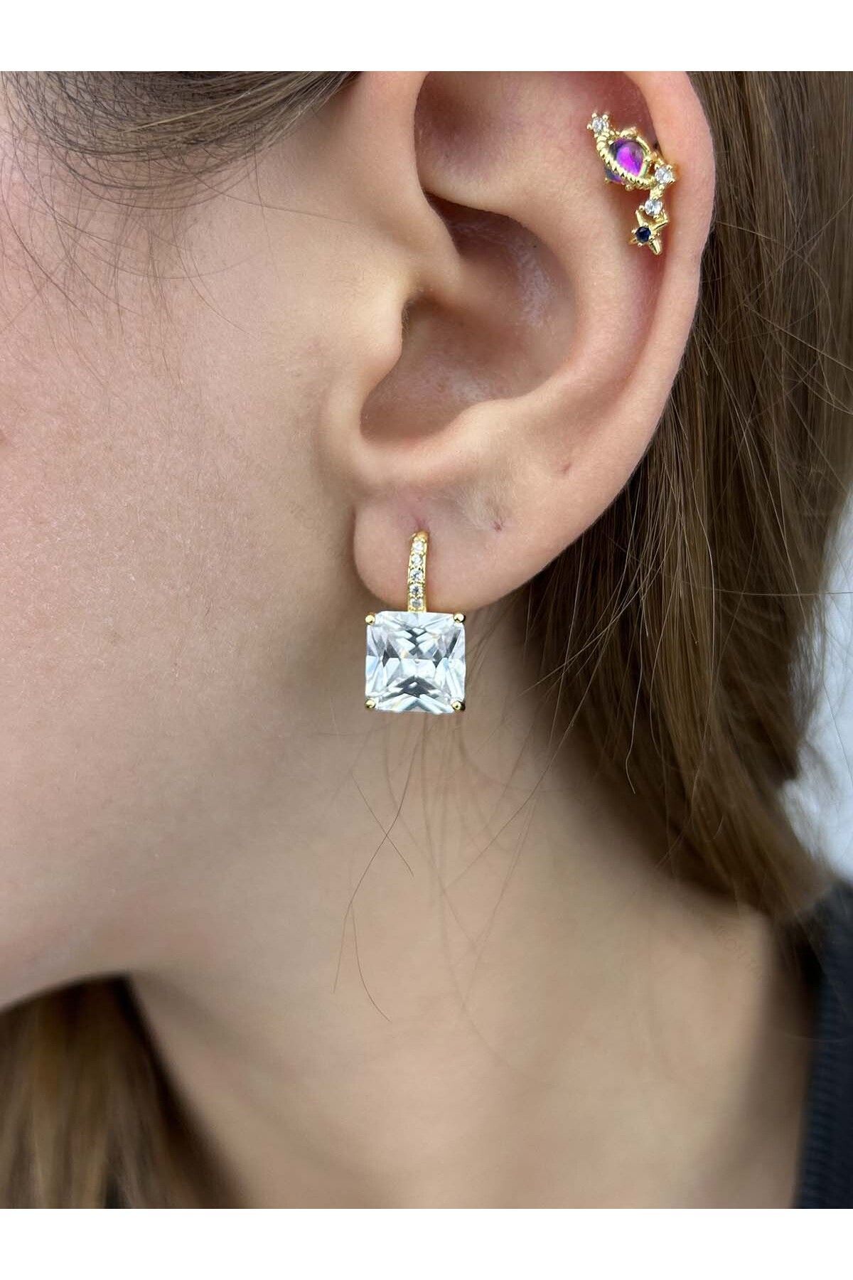 925 Ayar Gümüş Baget Taşlı Küpe 925 Ayar Gümüş Baget Taşlı Küpe Kbys373 تک سایز