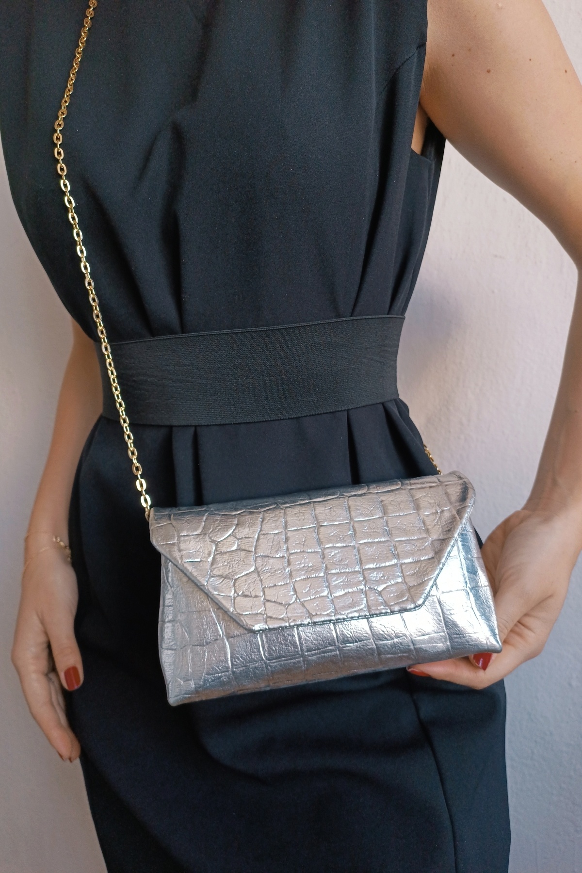 Suffle Gümüş Croco Desen Zincir Askılı Kadın Omuz Çantası Suffle Gümüş Croco Desen Zincir Askılı Kadın Omuz Çantası GLX-1000-100-0077 Standart