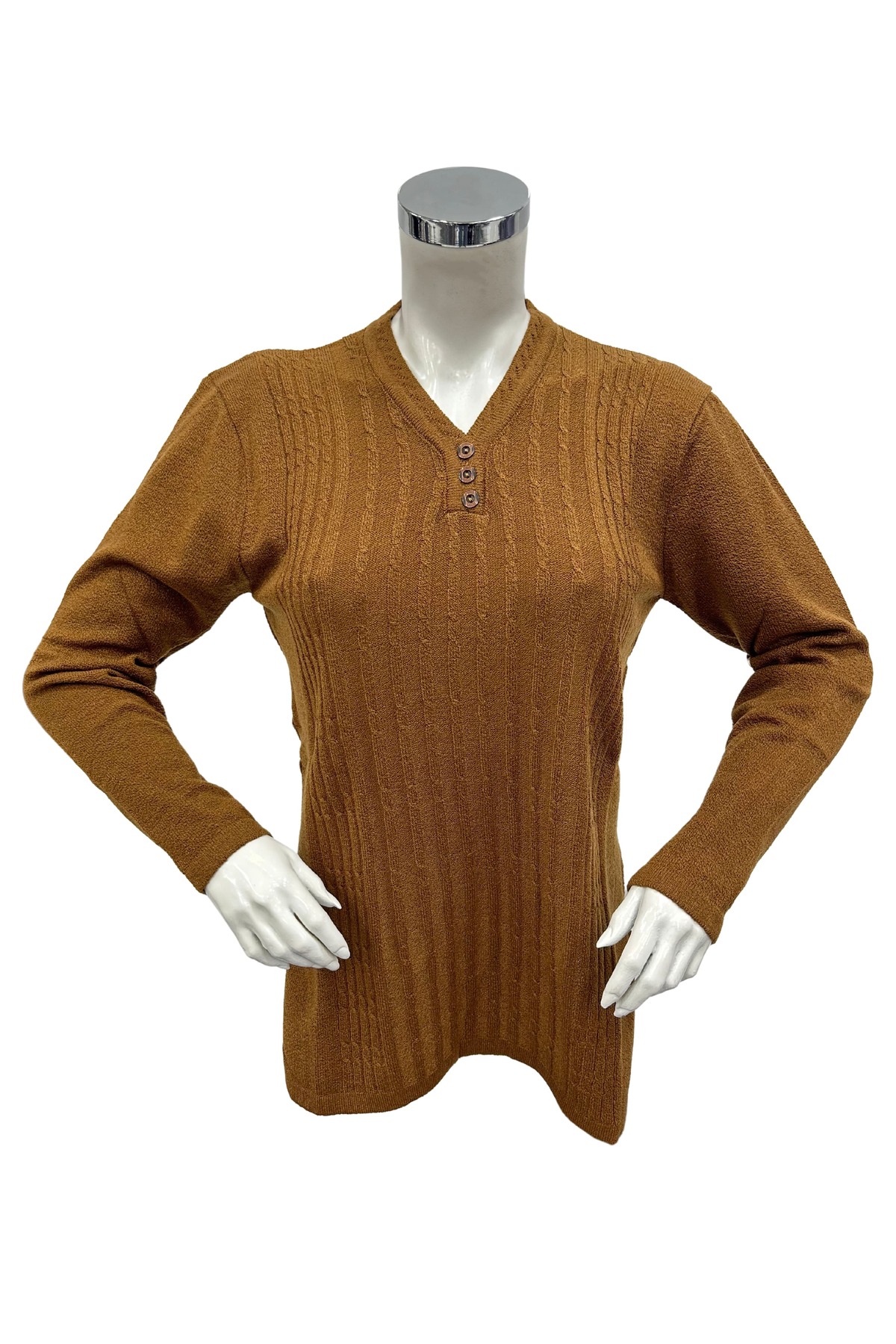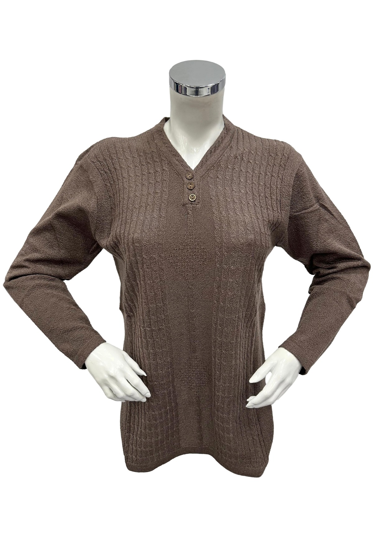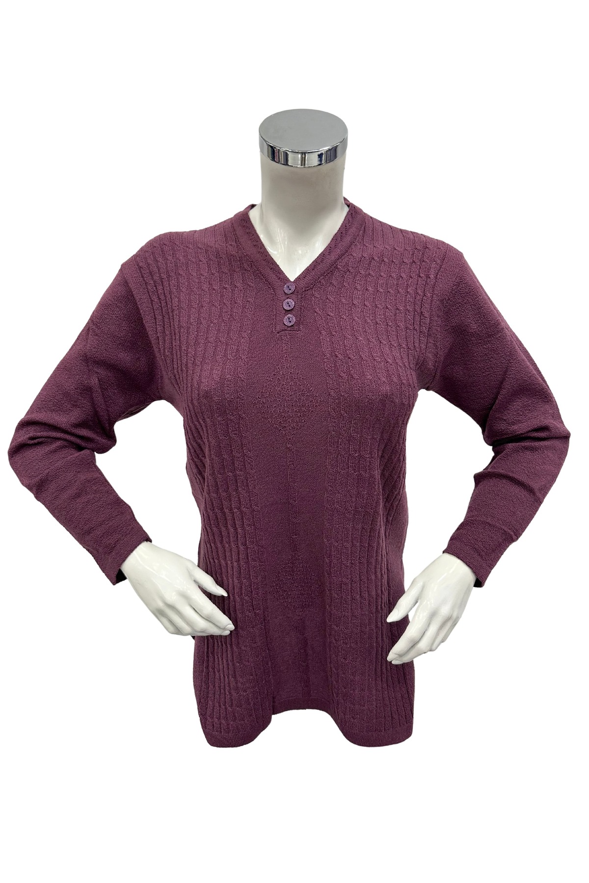 Kadın Kabartma Çizgili Desenli Yırtmaçlı Düğmeli V Yaka Anne Bluz Kazak Kadın Kabartma Çizgili Desenli Yırtmaçlı Düğmeli V Yaka Anne Bluz Kazak 0067 XL