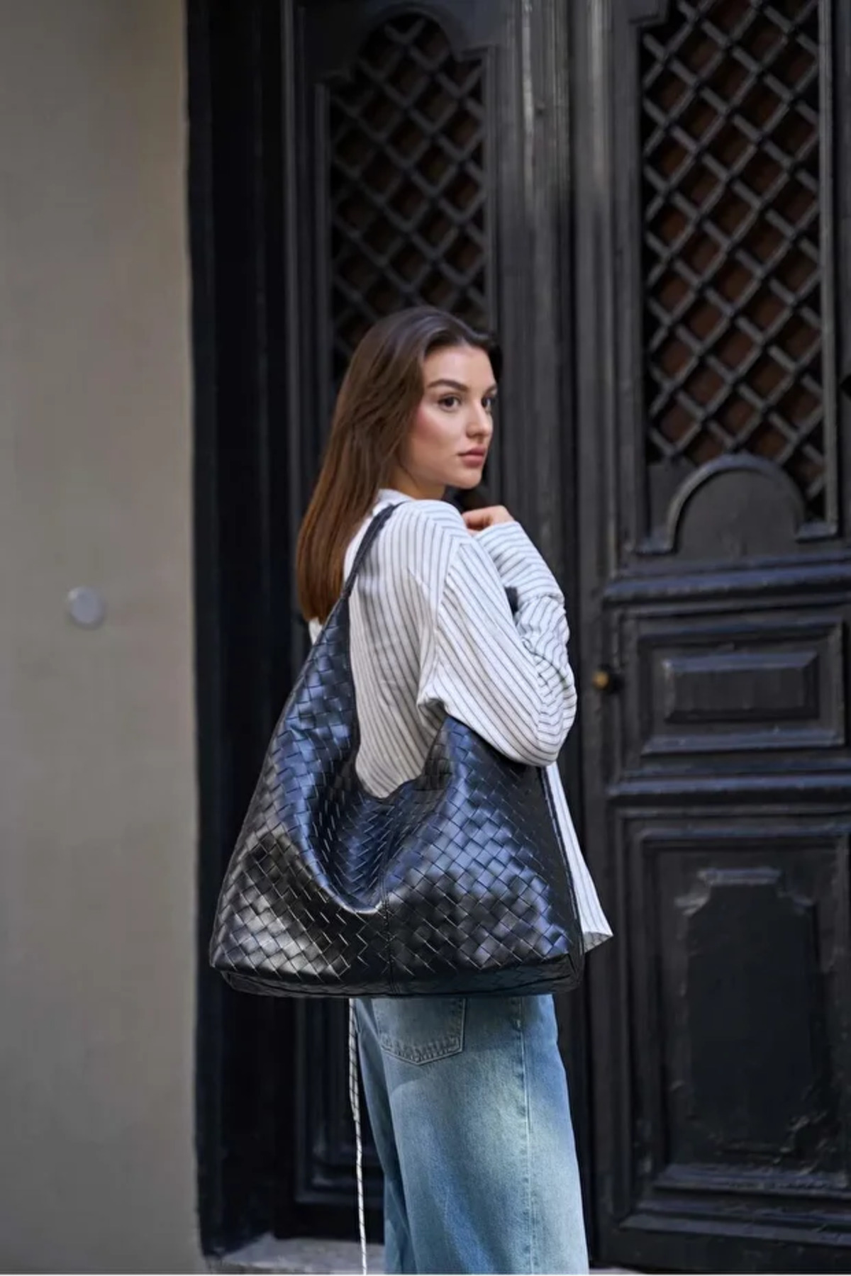 Stores Örgü Desenli Geniş Suni Deri Kadın Büyük Boy Omuz Çantası Stores Örgü Desenli Geniş Suni Deri Kadın Büyük Boy Omuz Çantası Mcbottegageniş L