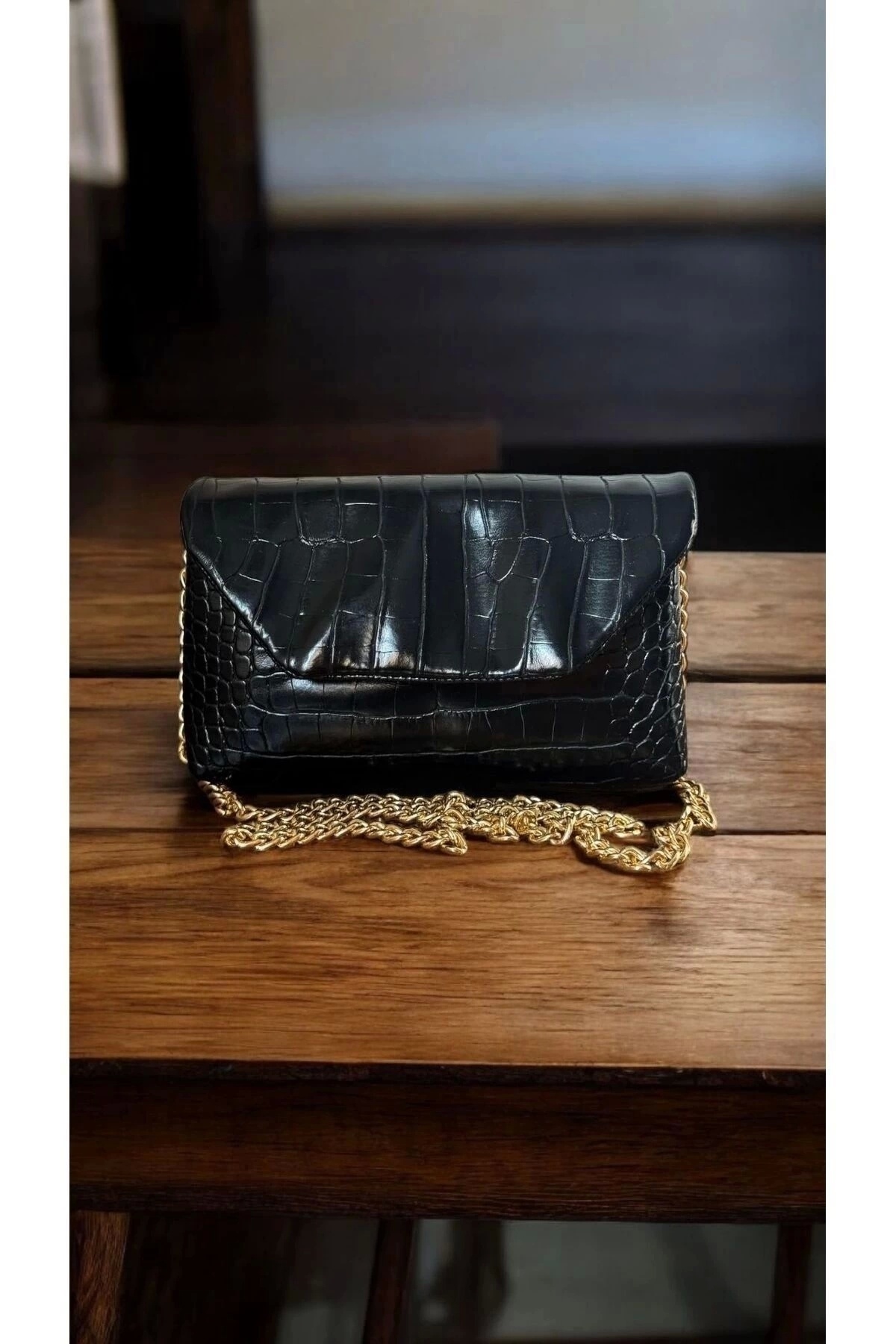 Suffle Siyah Croco Desen Zincir Askılı Kadın Omuz Çantası Suffle Siyah Croco Desen Zincir Askılı Kadın Omuz Çantası GLX-1000-100-0077 Standart