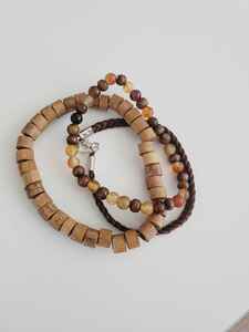 Bileklik Seti 3'lü Ahşap Boncuklu Deri Görünümlü Bileklik Seti 3'lü Ahşap Boncuklu Deri Görünümlü 4WAM70019AA تک سایز