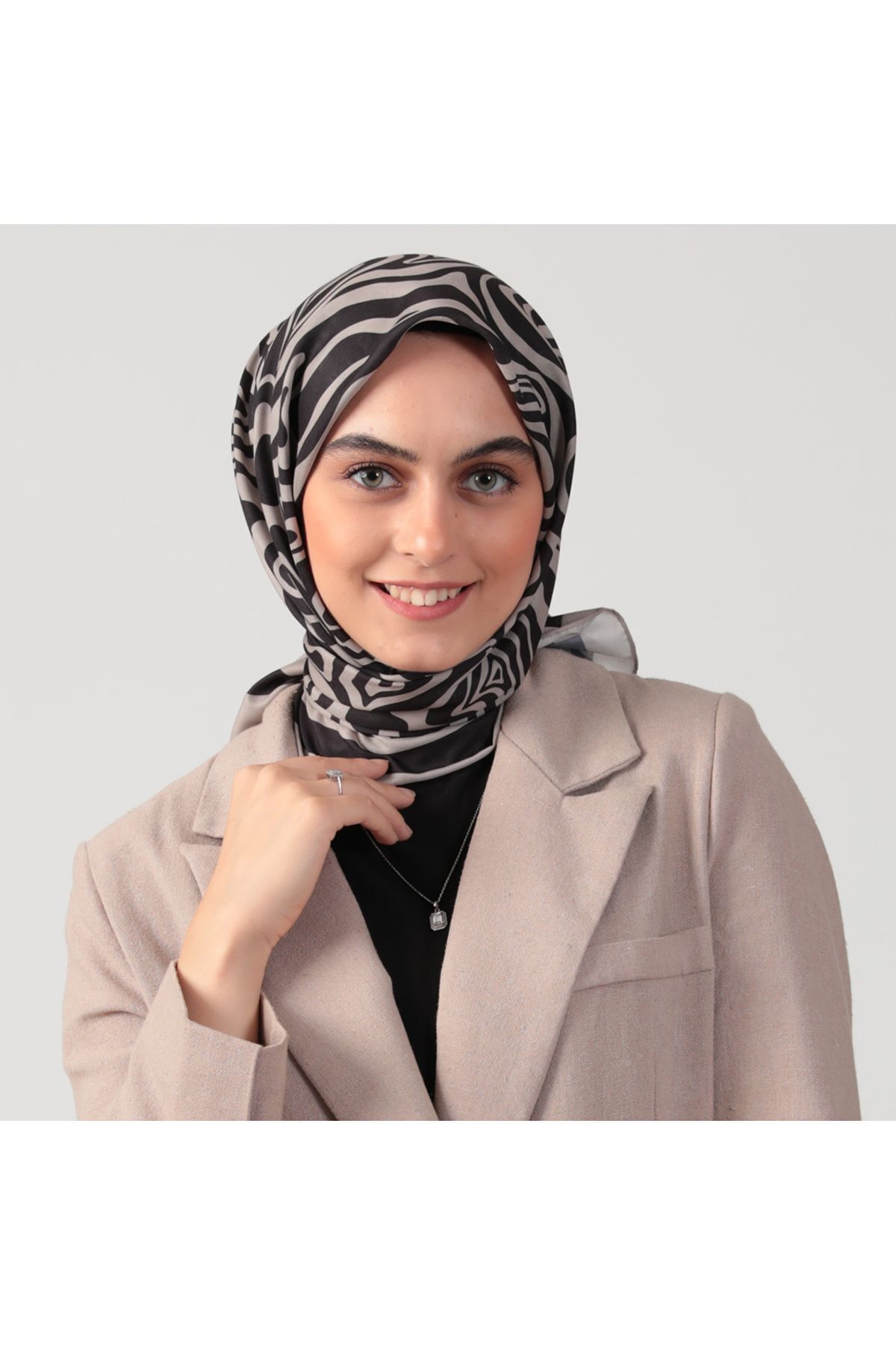 Pamuk İpek Eşarp - Helezon Desen - Vizon Pamuk İpek Eşarp - Helezon Desen - Vizon 11451 90x90
