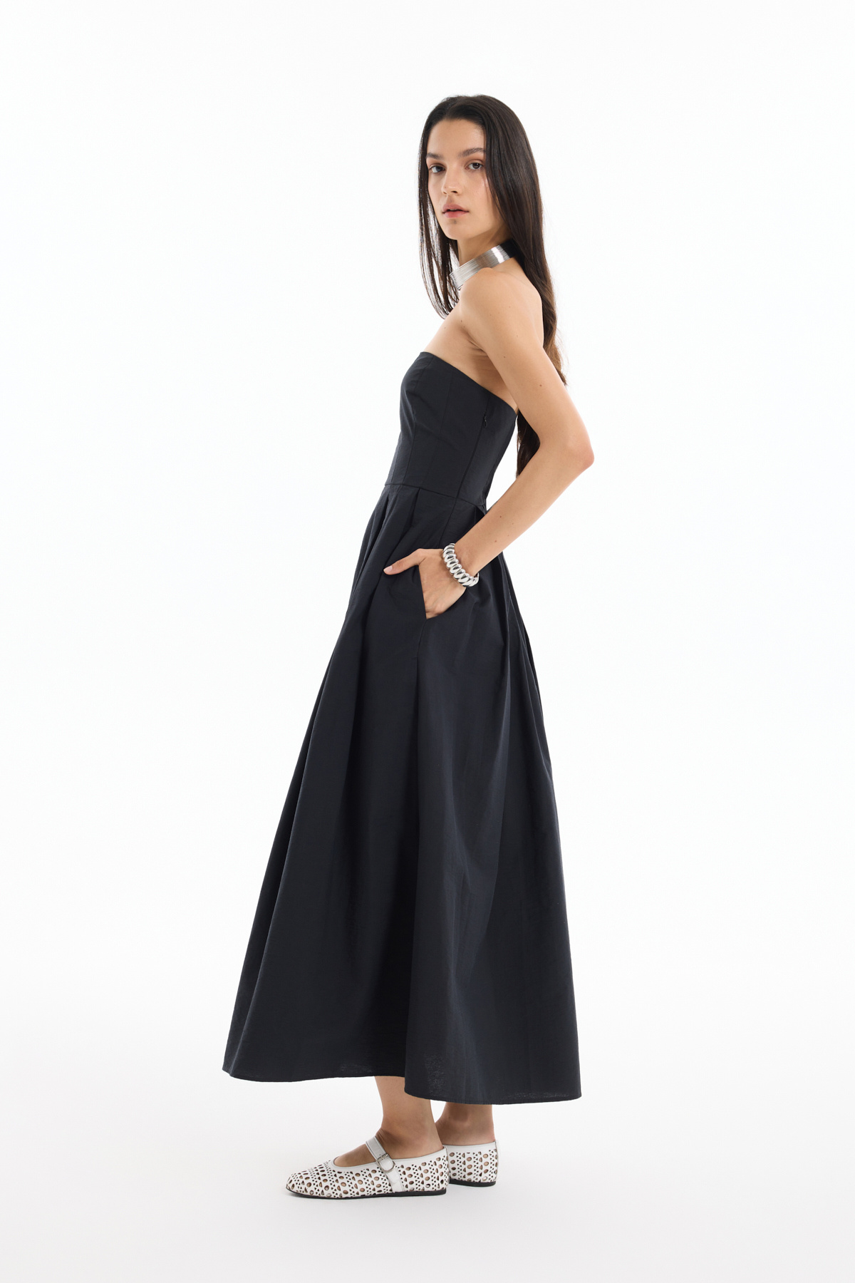 Straplez Pile Detaylı Uzun Elbise Siyah Straplez Pile Detaylı Uzun Elbise Siyah 24Y31967 L