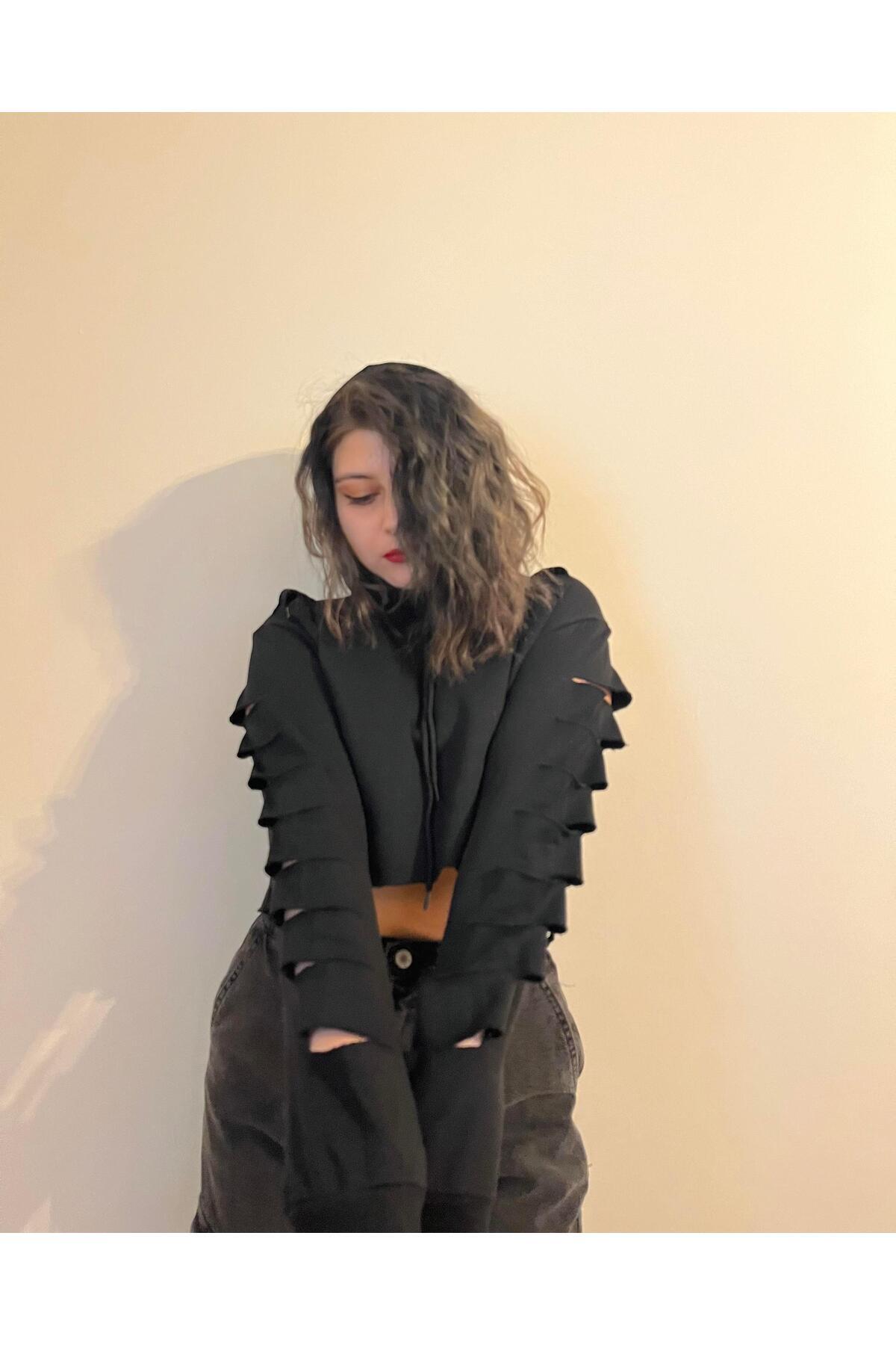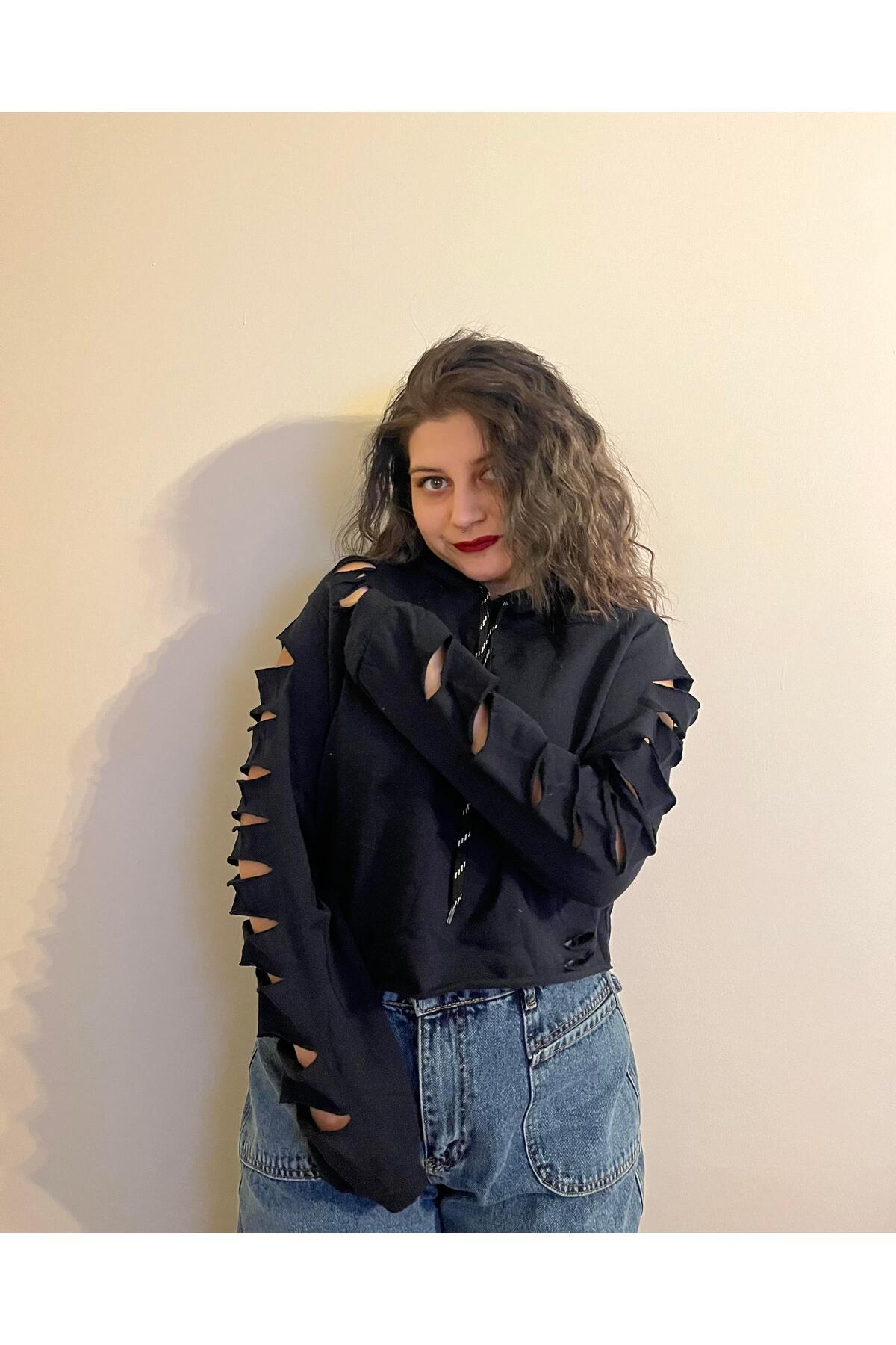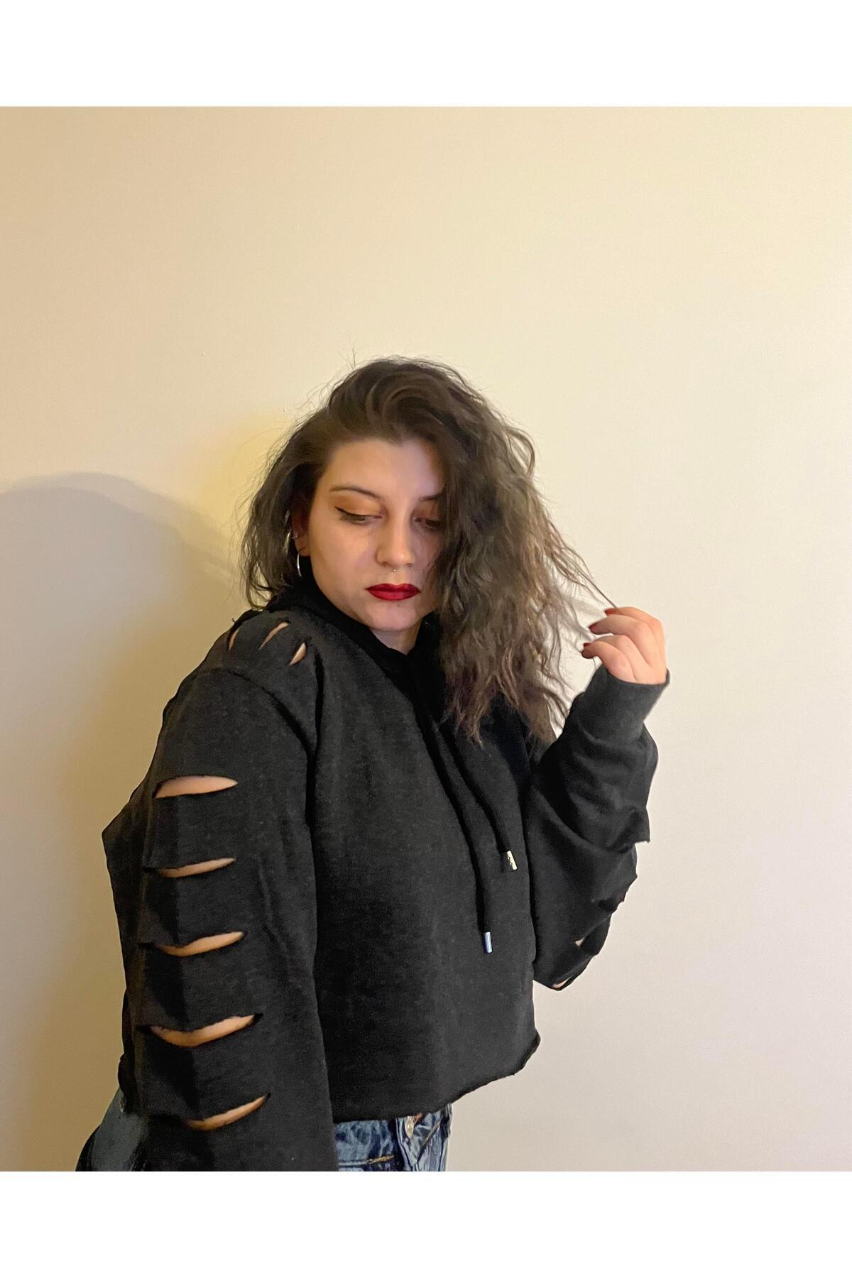 İki İplik Kapşonlu Tasarım Cut Out Detay Crop Sweatshirt İki İplik Kapşonlu Tasarım Cut Out Detay Crop Sweatshirt Cdsweat M