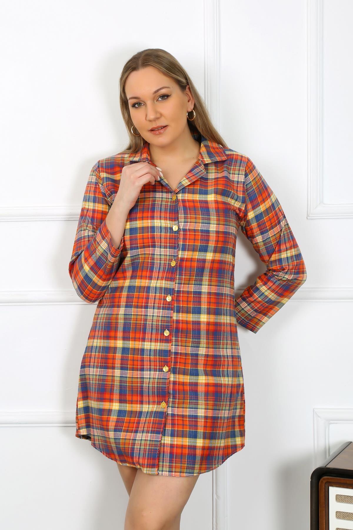 Kadın Penye Uzun Kol Düğmeli Saks Tunik Gecelik 13103 Kadın Penye Uzun Kol Düğmeli Saks Tunik Gecelik 13103 2XL