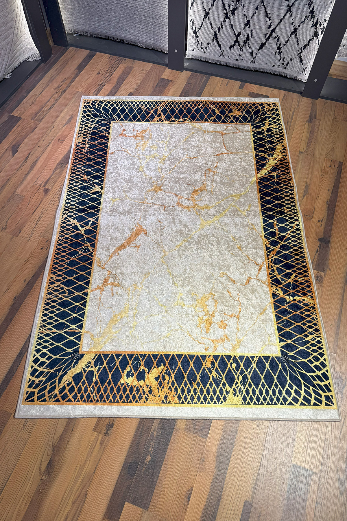 Dijital Baskılı Kaymaz Taban Yıkanabilir Çerçeveli Mutfak Salon Halısı, V-ÇERÇEVELİ-41-GOLD, Dijital Baskılı Kaymaz Taban Yıkanabilir Çerçeveli Mutfak Salon Halısı, V-ÇERÇEVELİ-41-GOLD, 160 x 230