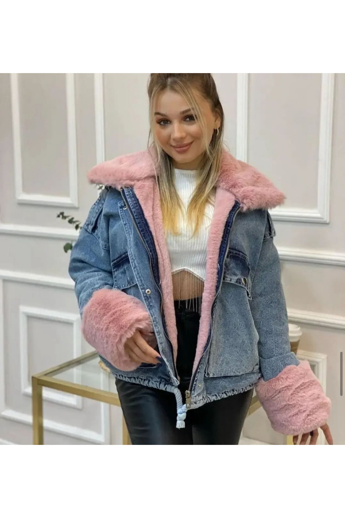 Kadın Oversize Kolları ve İçi Komple Pembe Kürklü Kot Mont Kadın Oversize Kolları ve İçi Komple Pembe Kürklü Kot Mont 6273773828 Standart