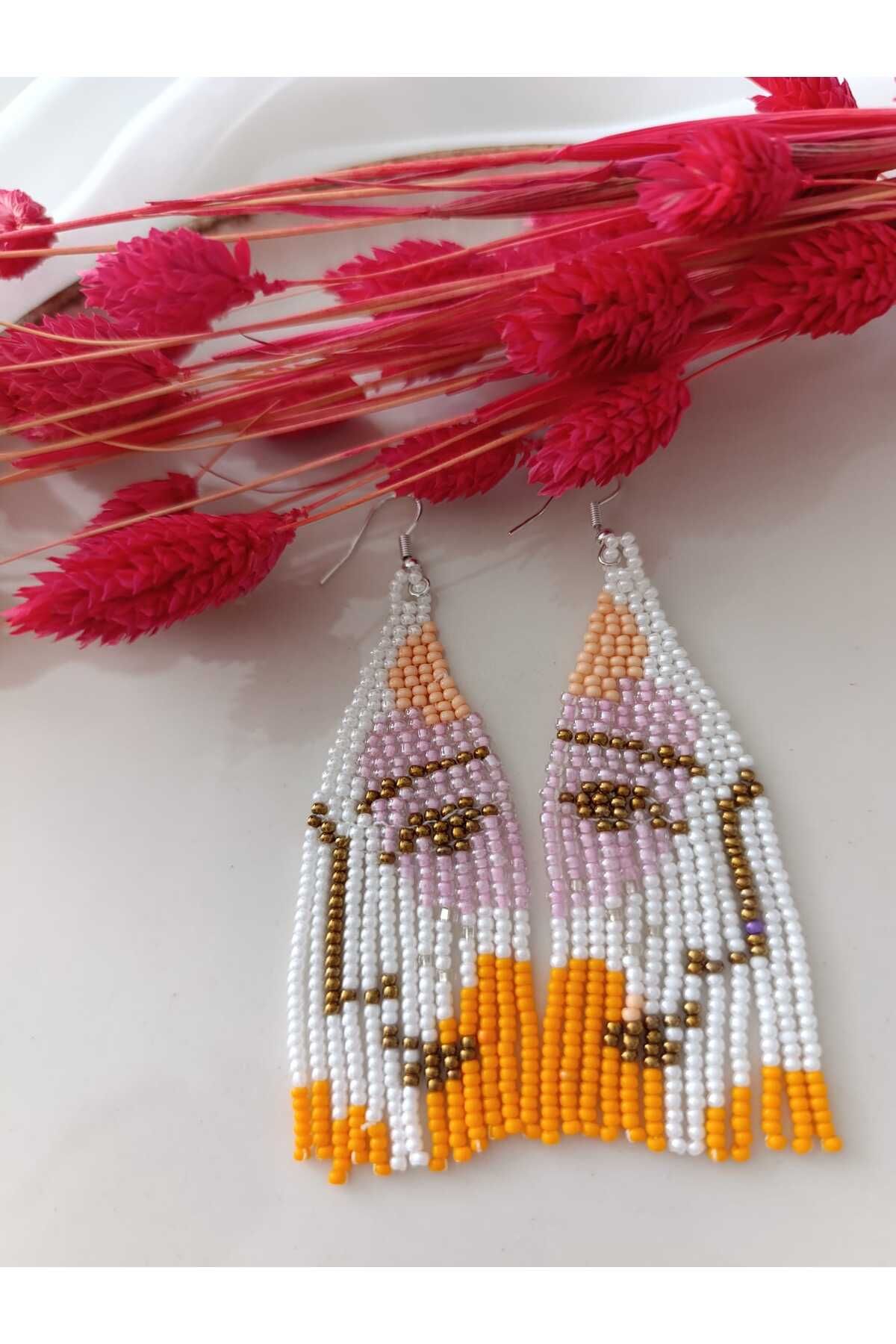 KUM BONCUK OYA EL YAPIMI KÜPE KUM BONCUK OYA EL YAPIMI KÜPE İP-KP0216 تک سایز