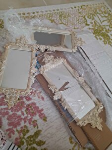 Dekoratif Polyester Üçlü Dikdörtgen Ayna Takımı Krem Gold Eskitme Dekoratif Polyester Üçlü Dikdörtgen Ayna Takımı Krem Gold Eskitme PM0065404 تک سایز