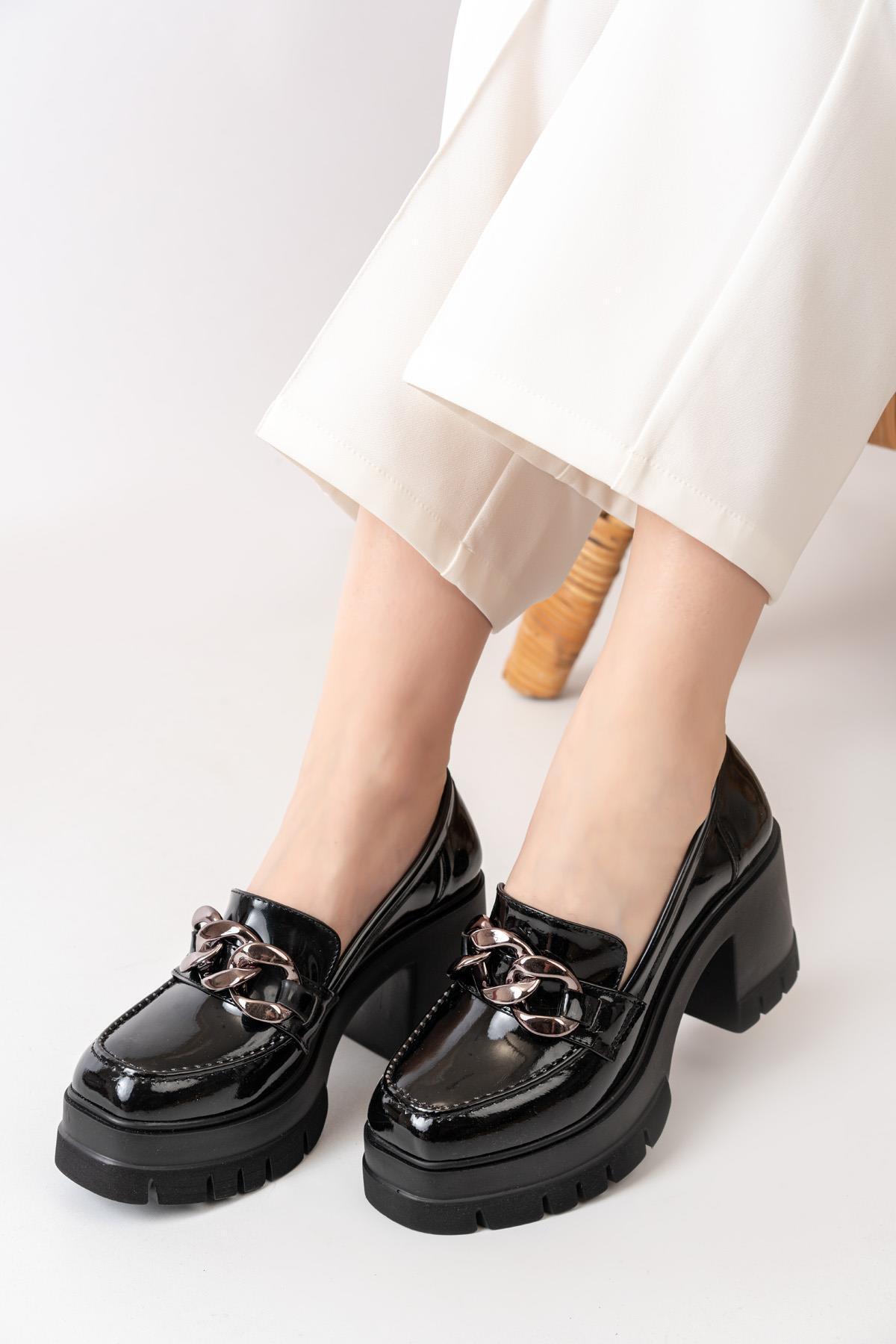 Kadın Zincir Tokalı Karmi 8 Cm Topuklu Loafer Platformlu Ayakkabı Siyah Kadın Zincir Tokalı Karmi 8 Cm Topuklu Loafer Platformlu Ayakkabı Siyah AMİ2235-AOS 40