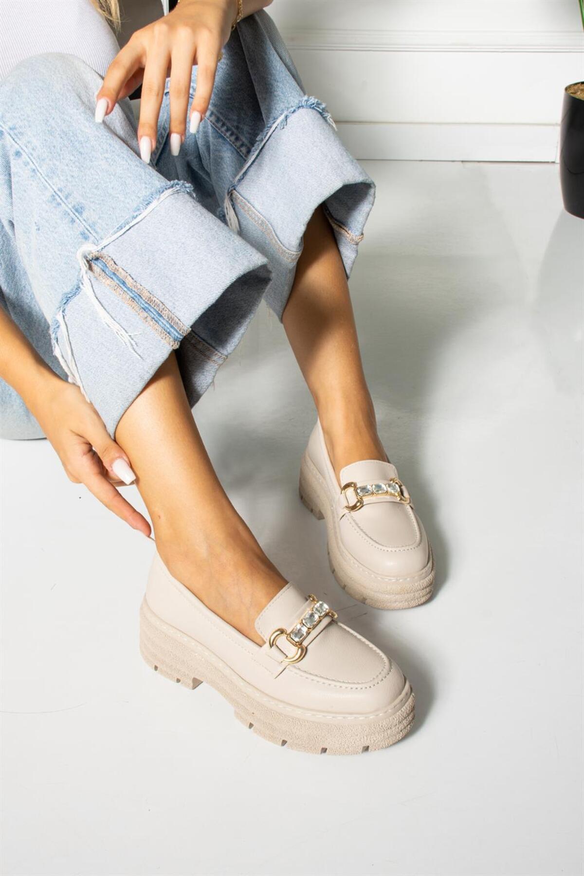 Kadın Zincir Detaylı Loafer Ayakkabı Kadın Zincir Detaylı Loafer Ayakkabı 42xdgucci 40